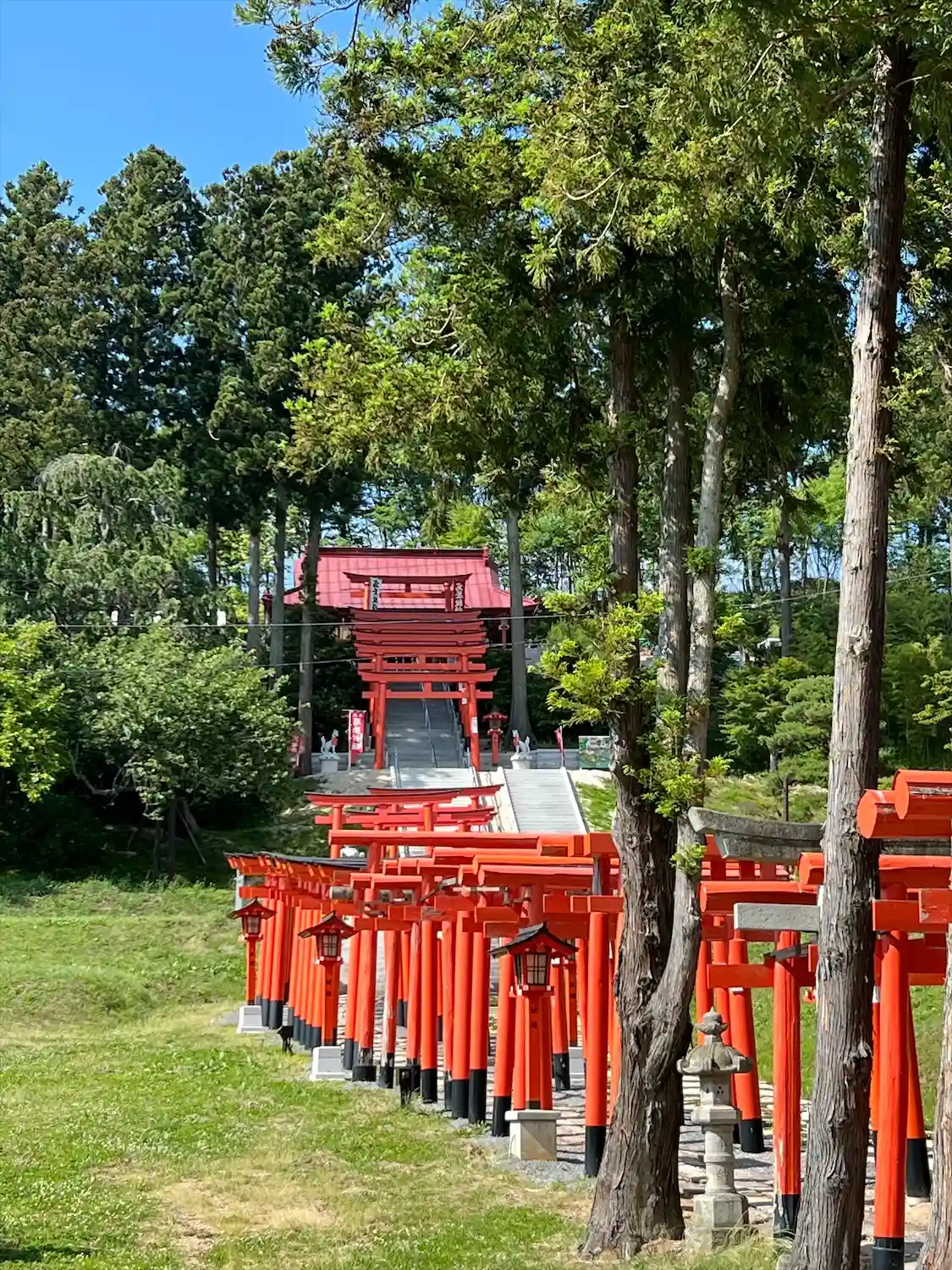 青空に赤い鳥居が映えるそんな神社ですね。今回2度目の参拝、お田植え限定御朱印いただきました。