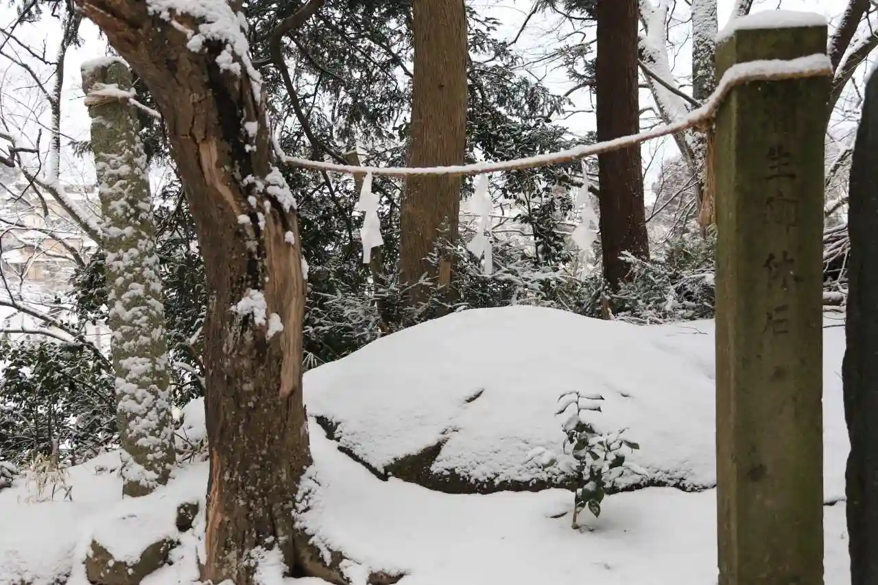 見回りにやってきた氏郷公が休まれた石が祀られていて