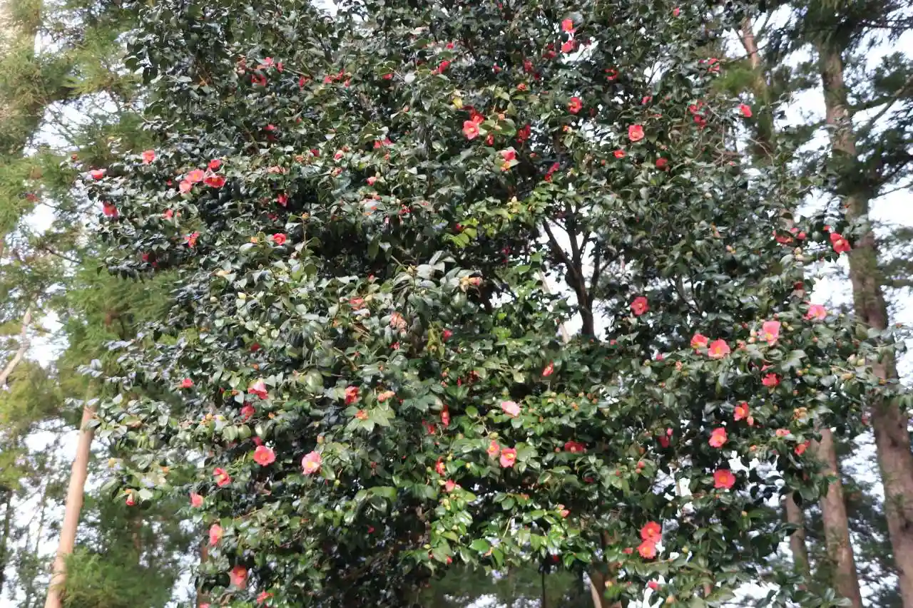 田村神社の花木はまだつぼみ