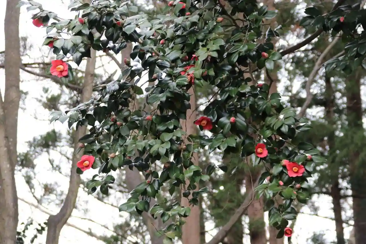 境内は椿が花盛り