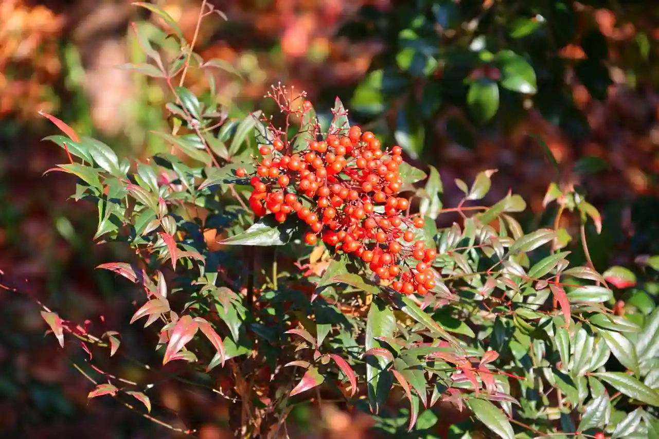 南天の実が赤く彩られて