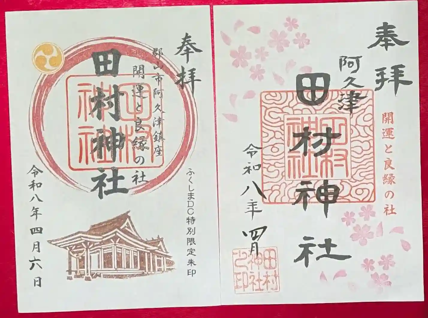 授与所にお伺いして、ふくしまディスティネーションキャンペーン特別限定朱印に日付を入れ、四月の御朱印と共に金屏風を背にして撮影しました。