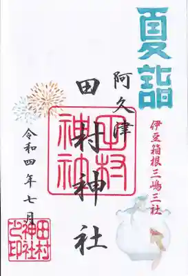 阿久津「田村神社」(郡山市阿久津町)旧社名:伊豆箱根三嶋三社の御朱印・御朱印帳