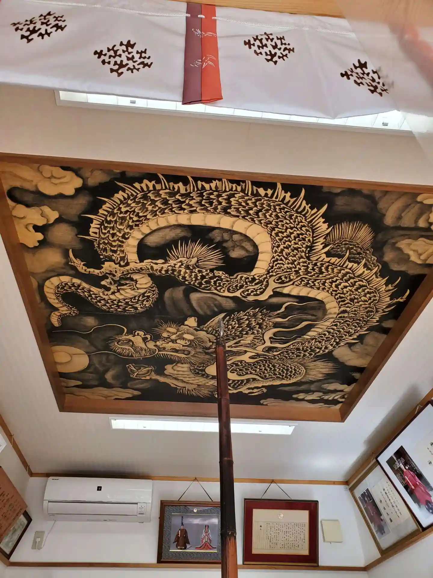 来週の例大祭に備えて宮司様は神楽殿の窓を磨き上げておりました。