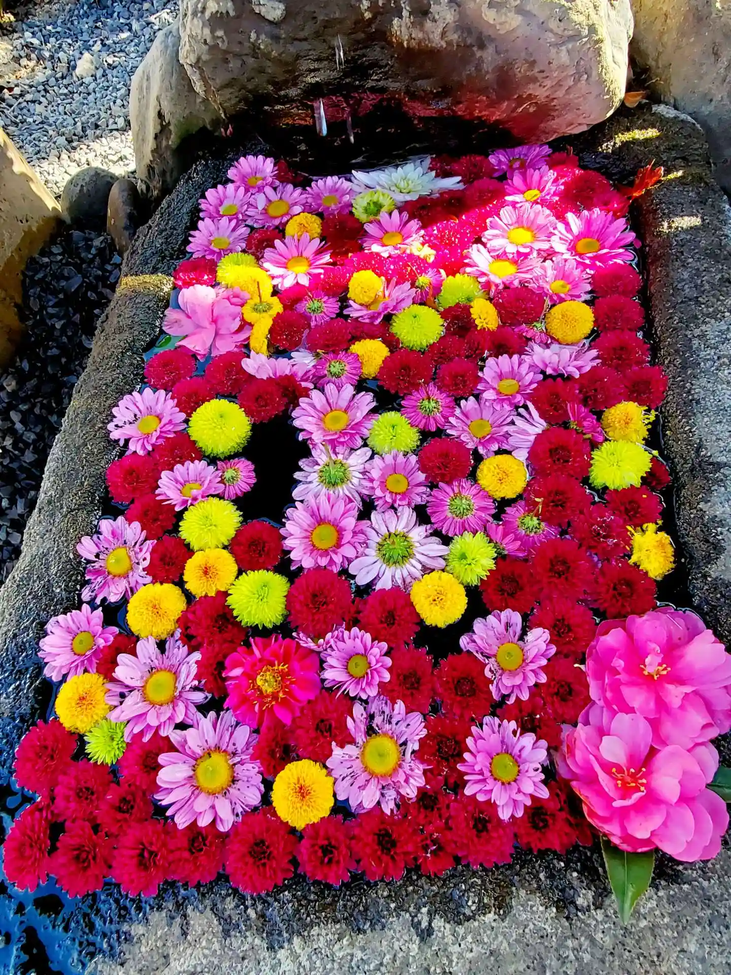 花手水のお花が鮮やかで綺麗です😊🌸🌼🌺