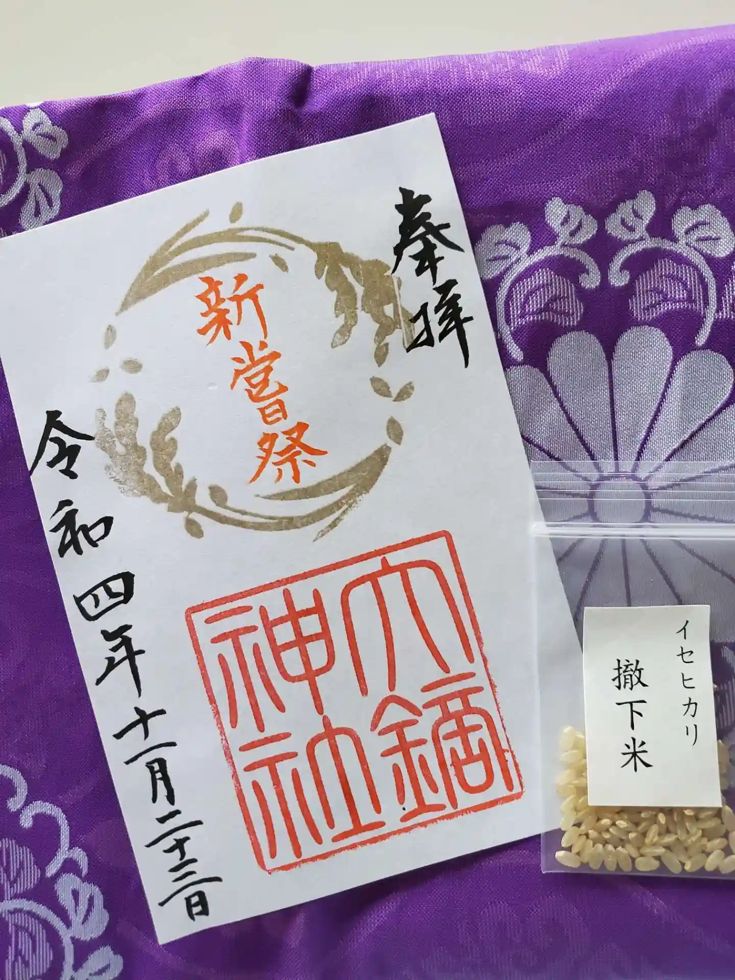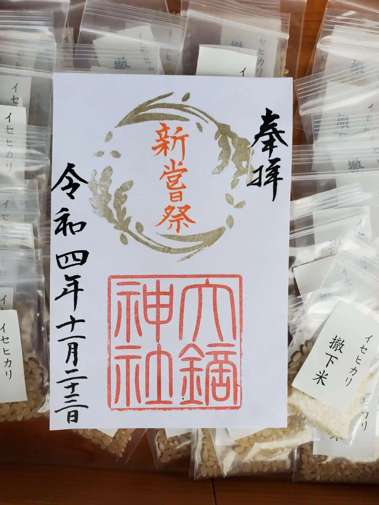 本日は新嘗祭の撤下米「イセヒカリ」のお裾分けも頂戴しました。