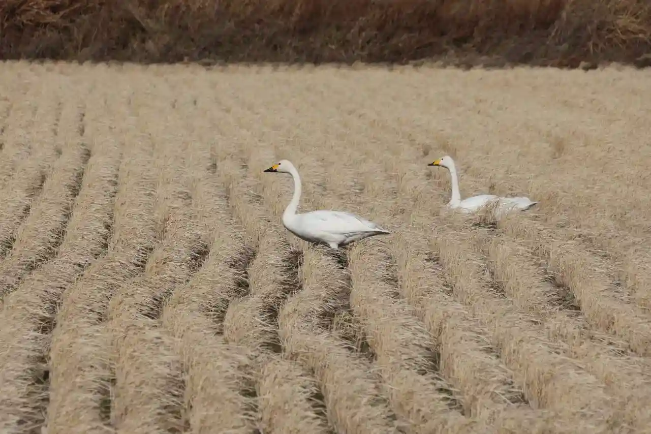 お社近くの田んぼでは白鳥がお食事中でした