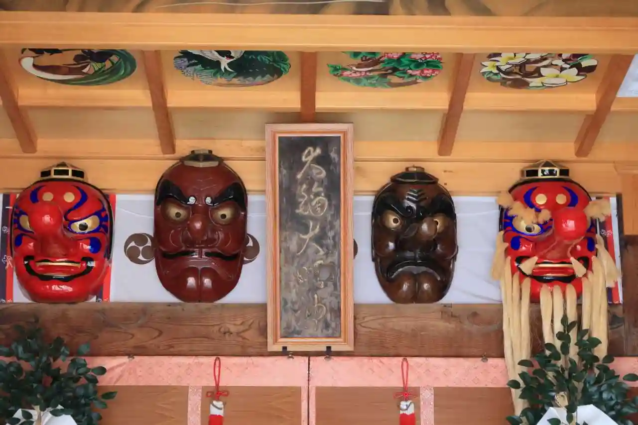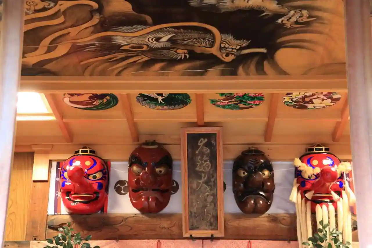 拝殿の中に天狗さんがいました。