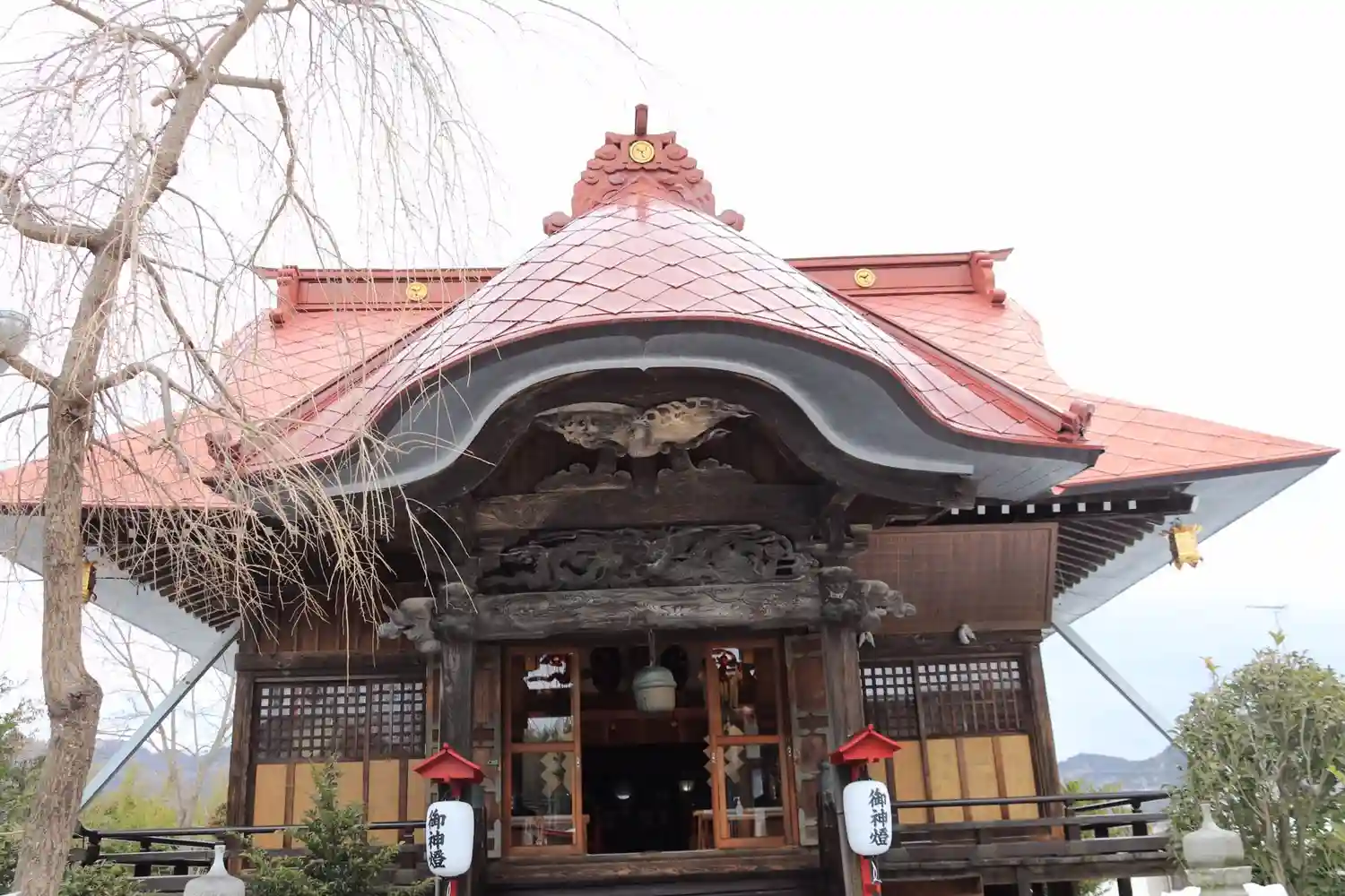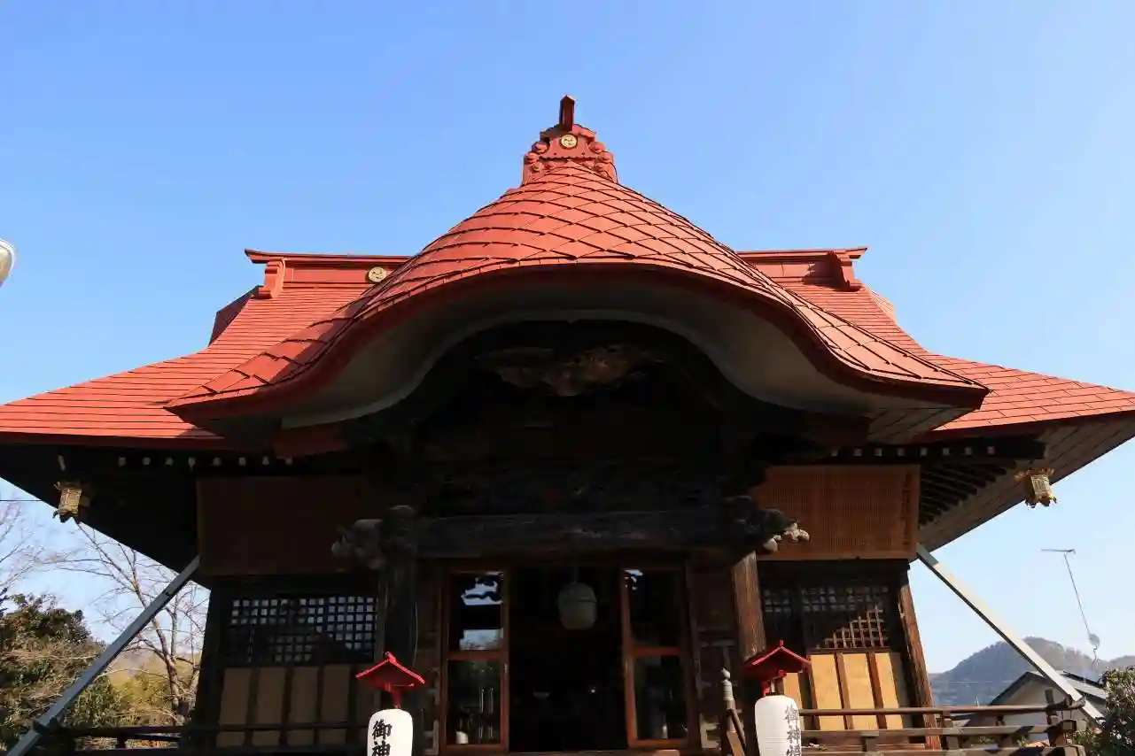 拝殿の丸みを帯びた屋根の形が独特に思えます。ほかでは見かけないのですが、なんという様式なのでしょうか。