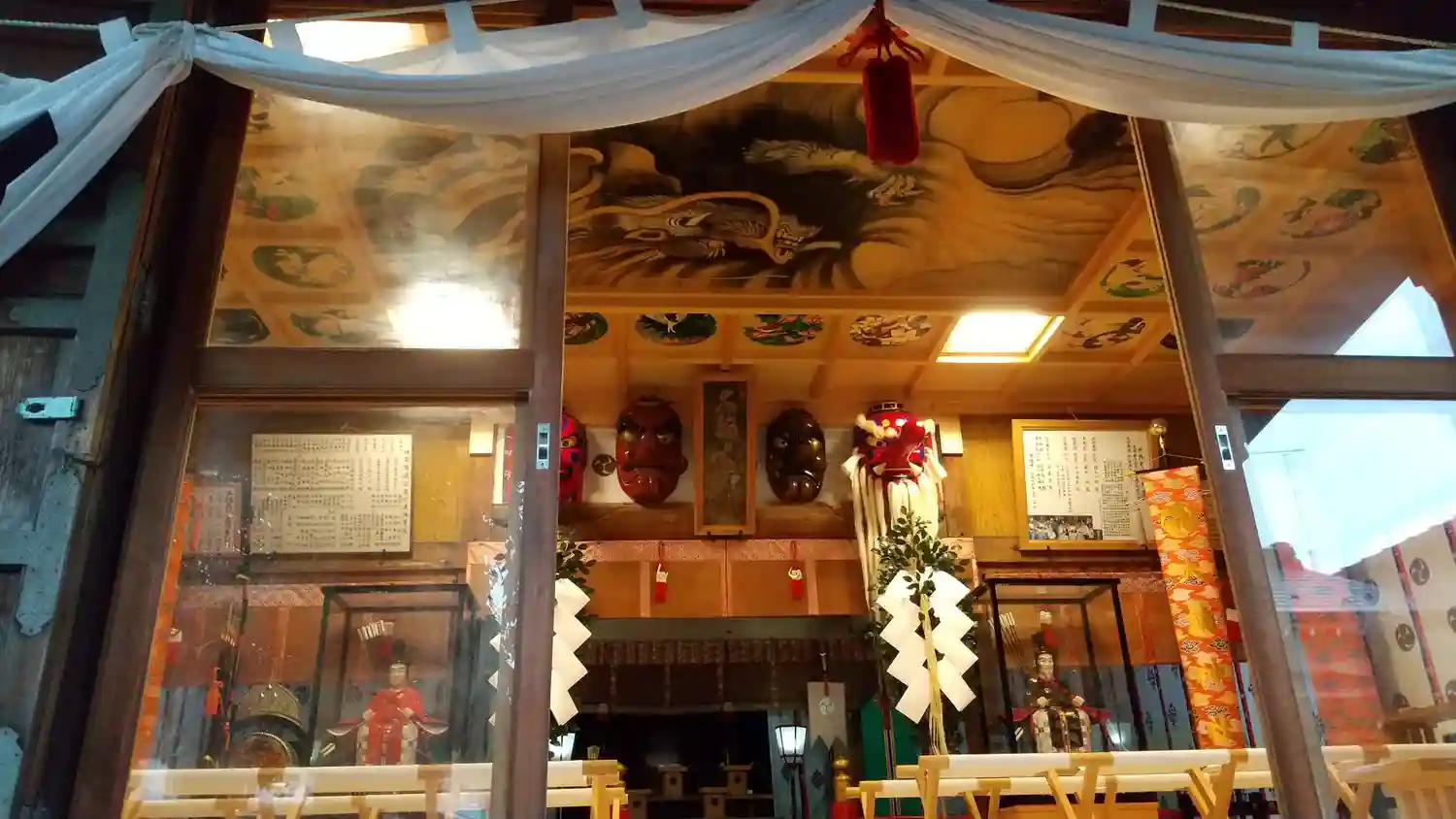 拝殿が開けてあり、天井画がちらりと見えました。