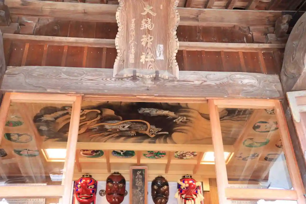 大蛇と大鏑の切絵と龍の天井画