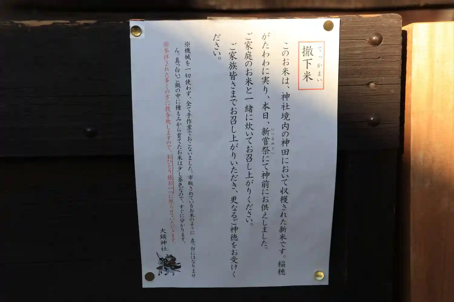新嘗祭で神前にお供えされた「撤下米」頂きました