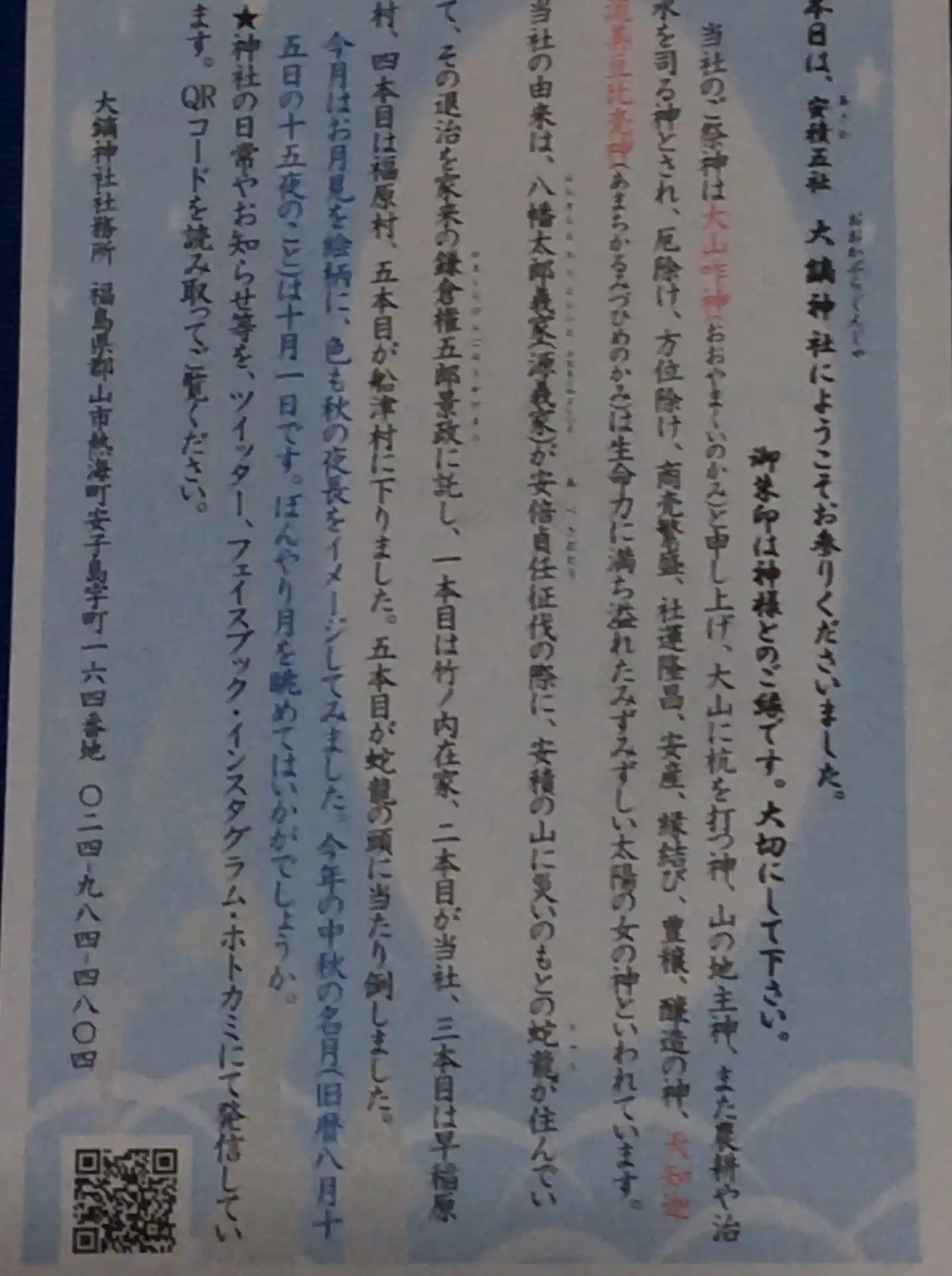電話にて宮司さん、禰宜さんにご挨拶させて頂きました。…