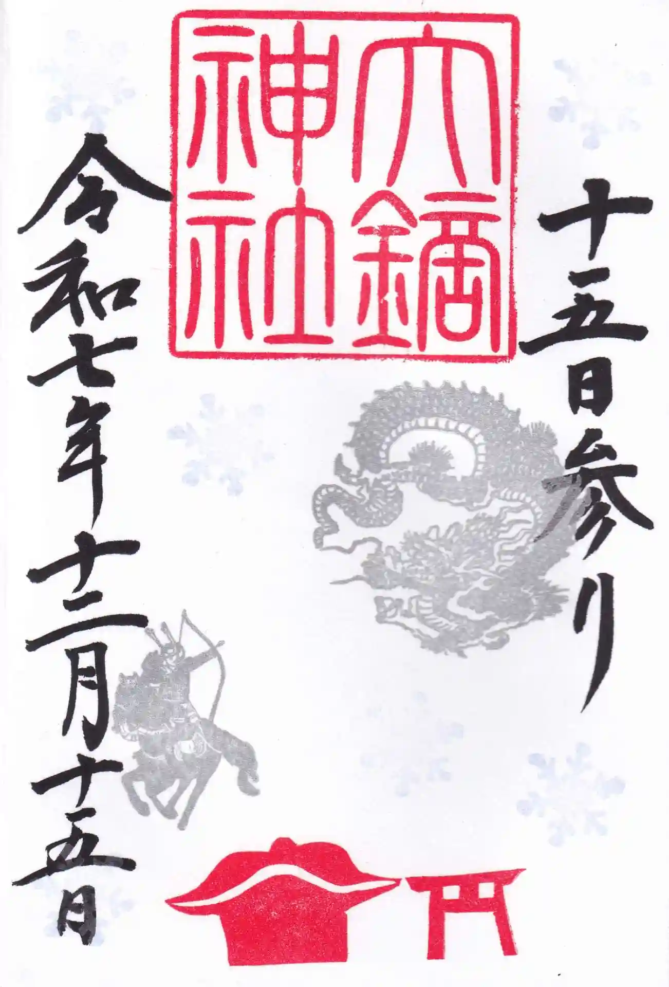 十一月で御朱印帳が埋まりましたので十二月は新たな御朱印帳に直書きしていただきました。