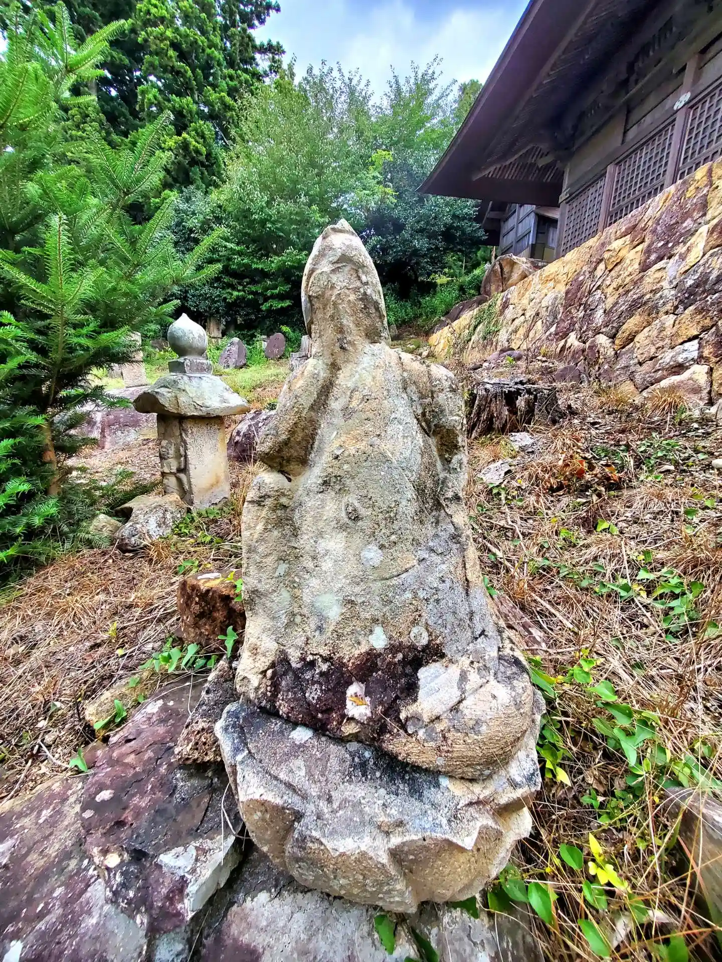 石垣の上にパッと👁️🗨️を引く屋根の神社⛩️