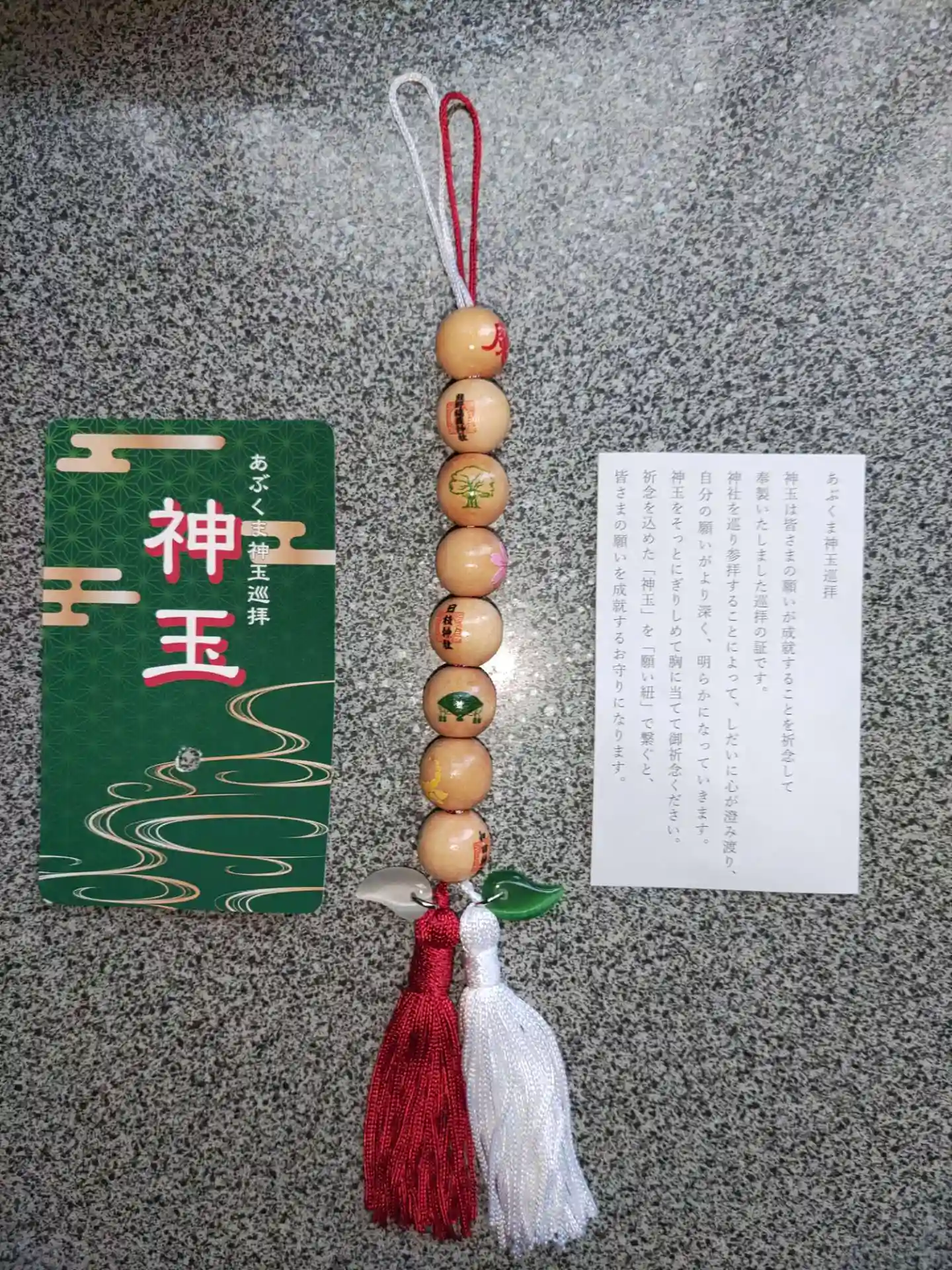 自宅で公式ホームページを参考に、全八社の神玉を二本の願い紐で繋いで、素敵なストラップが完成しました(o゜▽゜)o