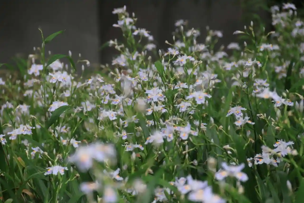 社務所前のシャガの大群落が