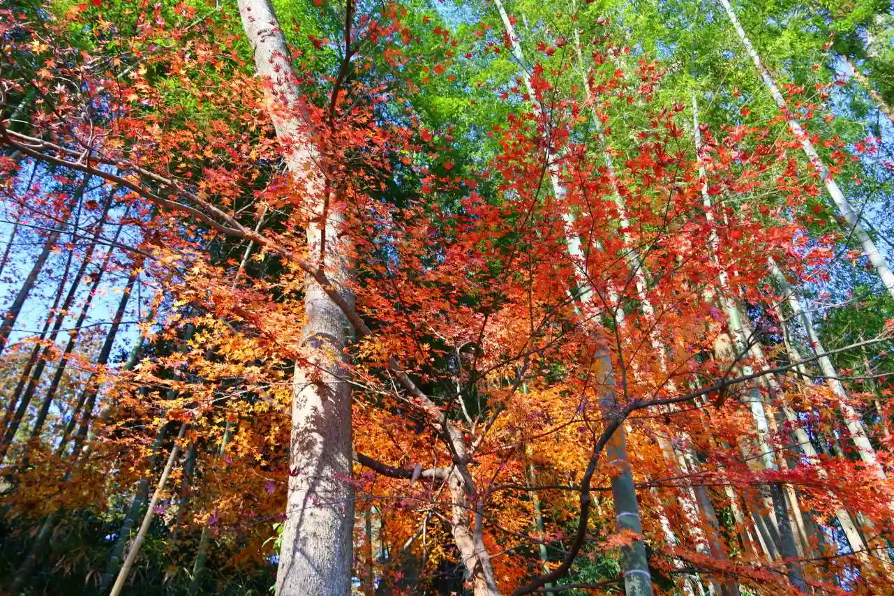 竹林にもう一本の楓、紅葉が残っていました