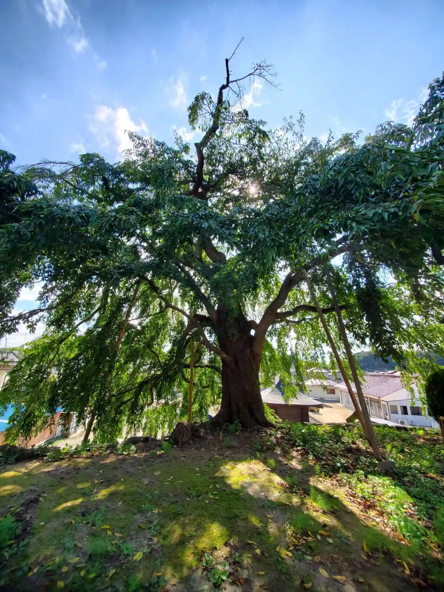 山門の脇に佇む枝垂桜は樹齢約160年とか