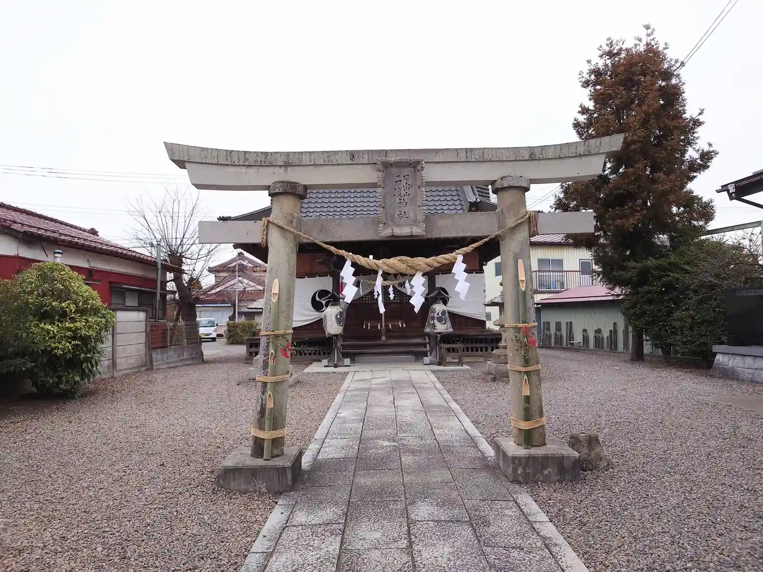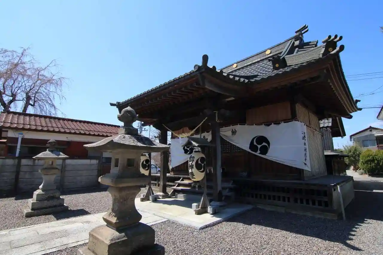 細い参道の奥に社殿が鎮座します