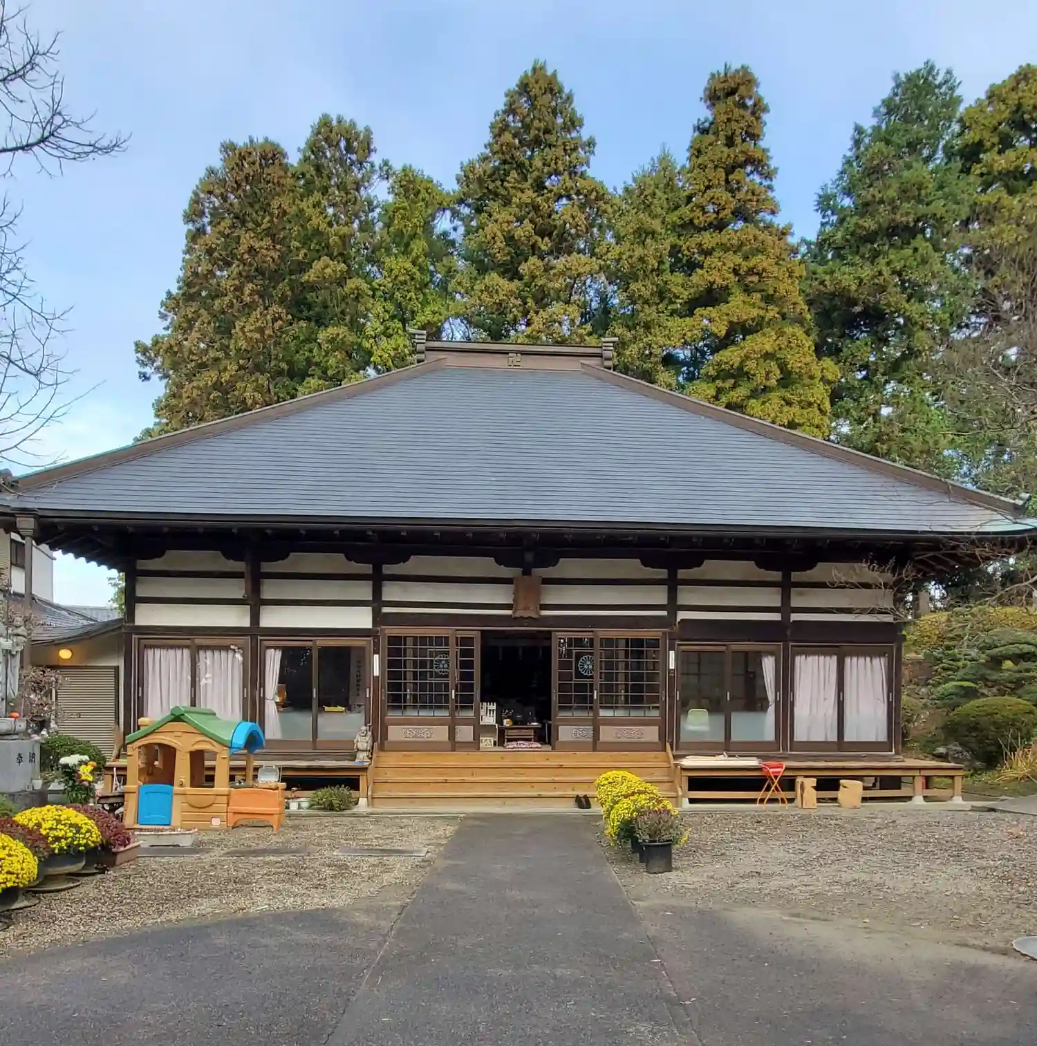 境内には三春滝桜から枝分けした、垂れ桜が有ります🌸住宅地に溶け込んだ、天台宗のお寺さんです😃