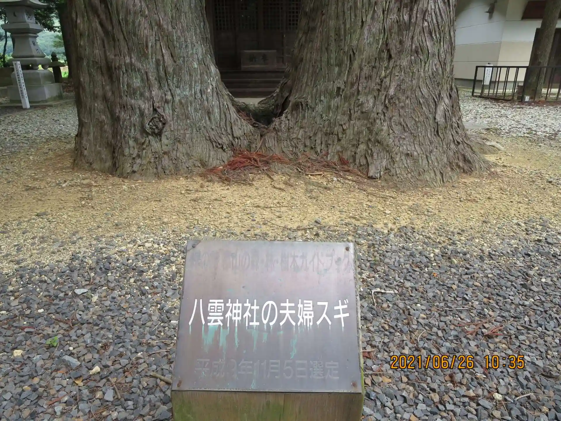 御神木と思われる二本の夫婦杉は根幹がくっついており、面白い光景でした。