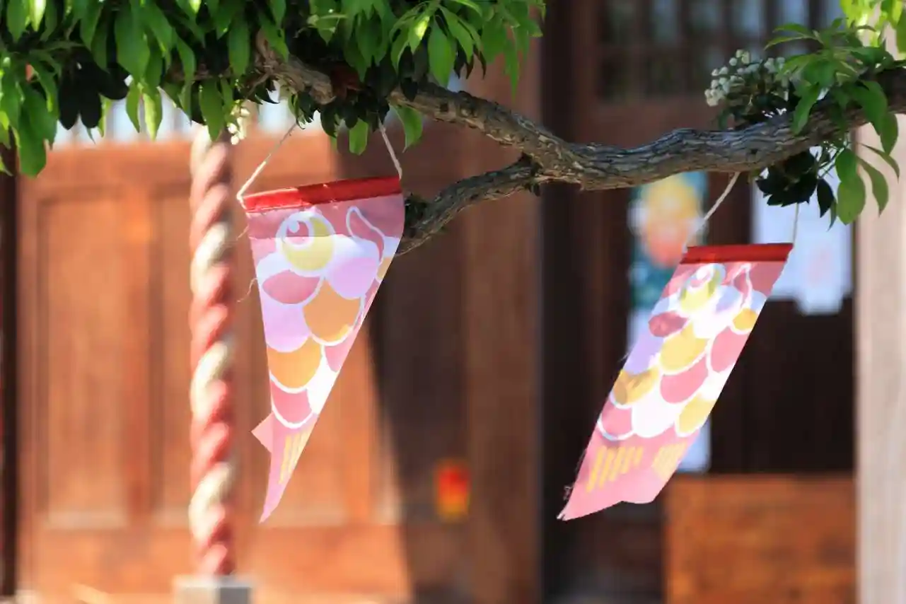 かわいい鯉のぼりが飾られた境内