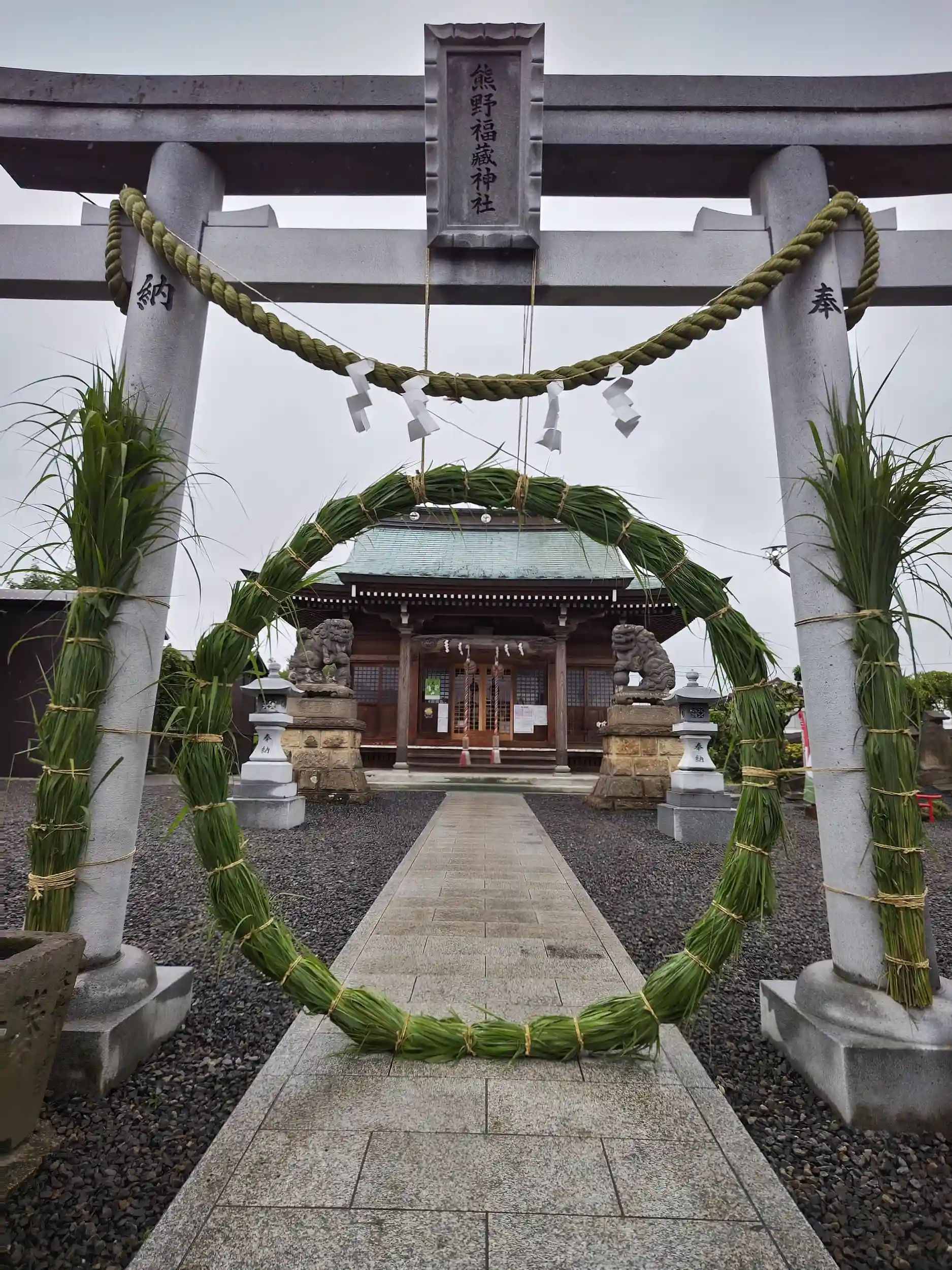 久し振りのお参りです。鳥居に緑鮮やかな茅の輪が出来ていました。早速くぐらせて頂きました。社の裏には、小さな紫陽花が雨の中綺麗に咲いていました。宮司さんが、茅の輪は、先程完成したところです。1番の参拝者ですよと、話していました。縁起が良いかな。