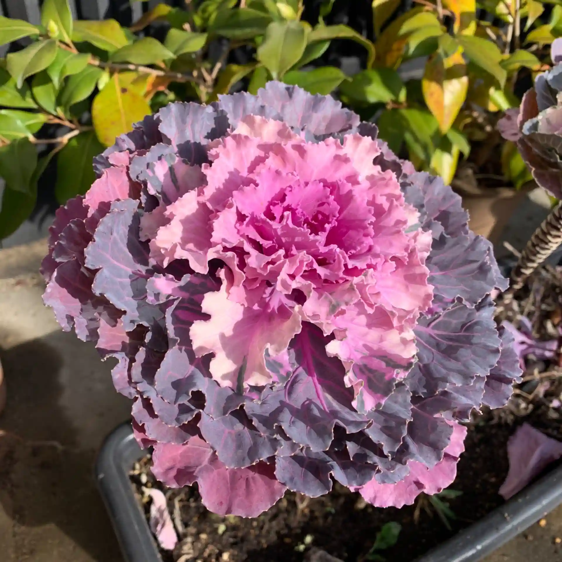 冬は花も少なくなるので、葉ボタンを授与所の前に植えました。