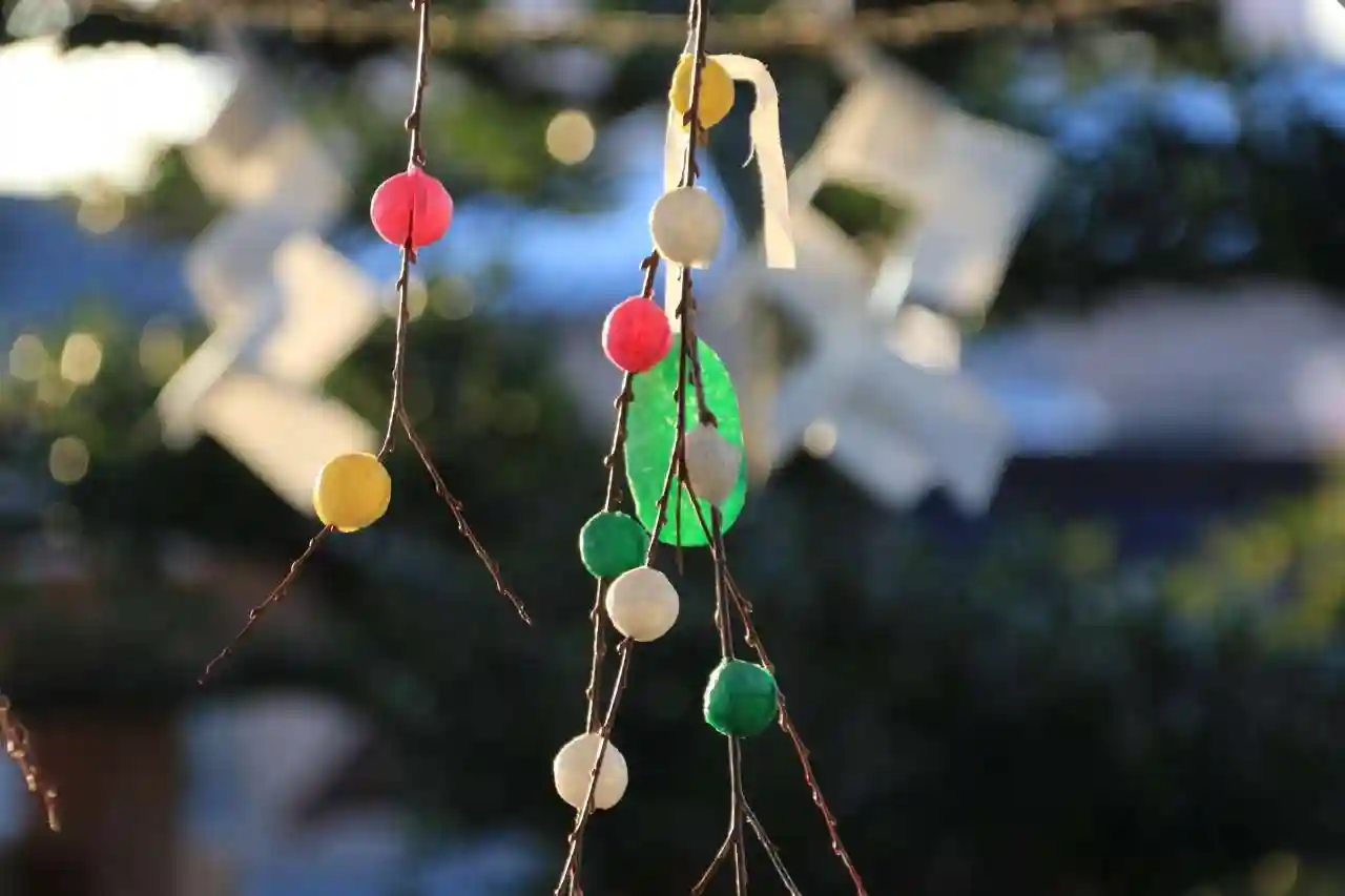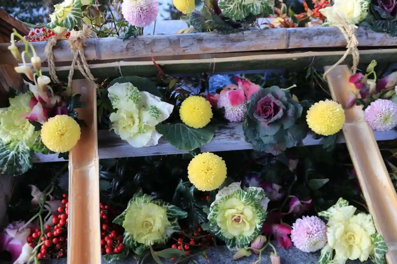 団子差し、花手水そしてお参りに社殿へ