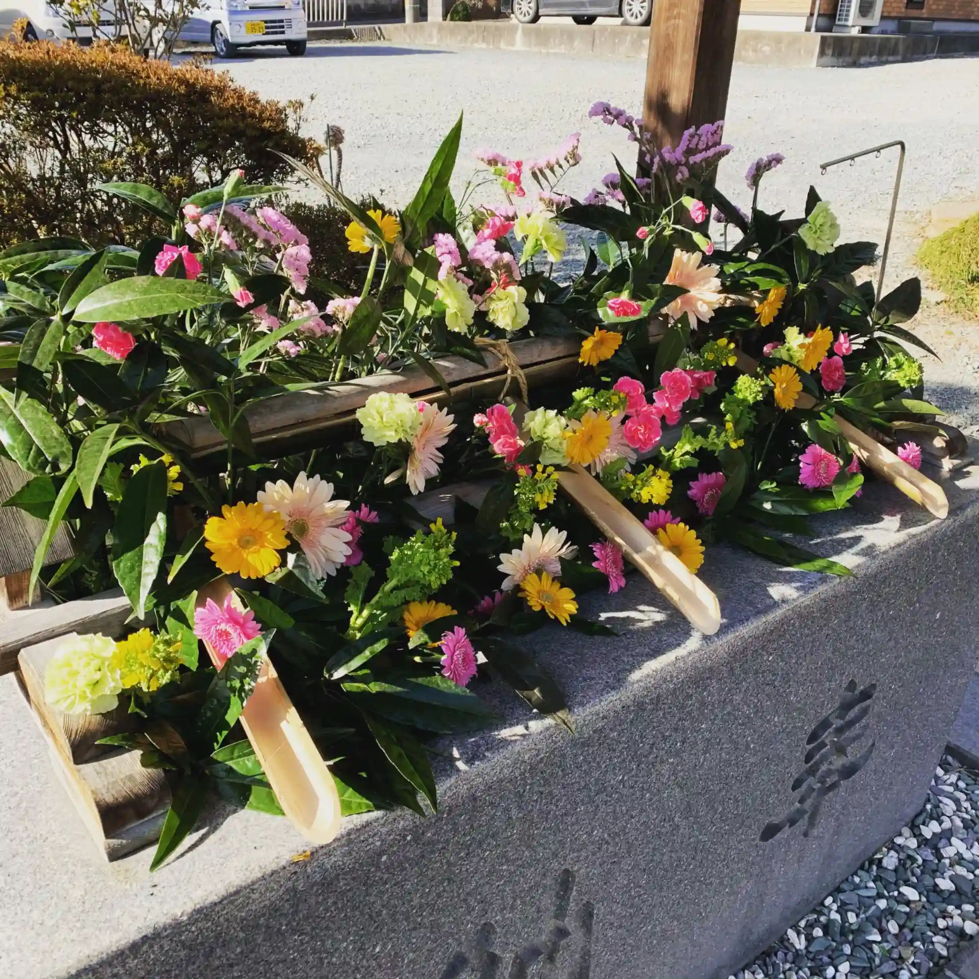 お花が大分痛んできたので入れ替えを行いました。