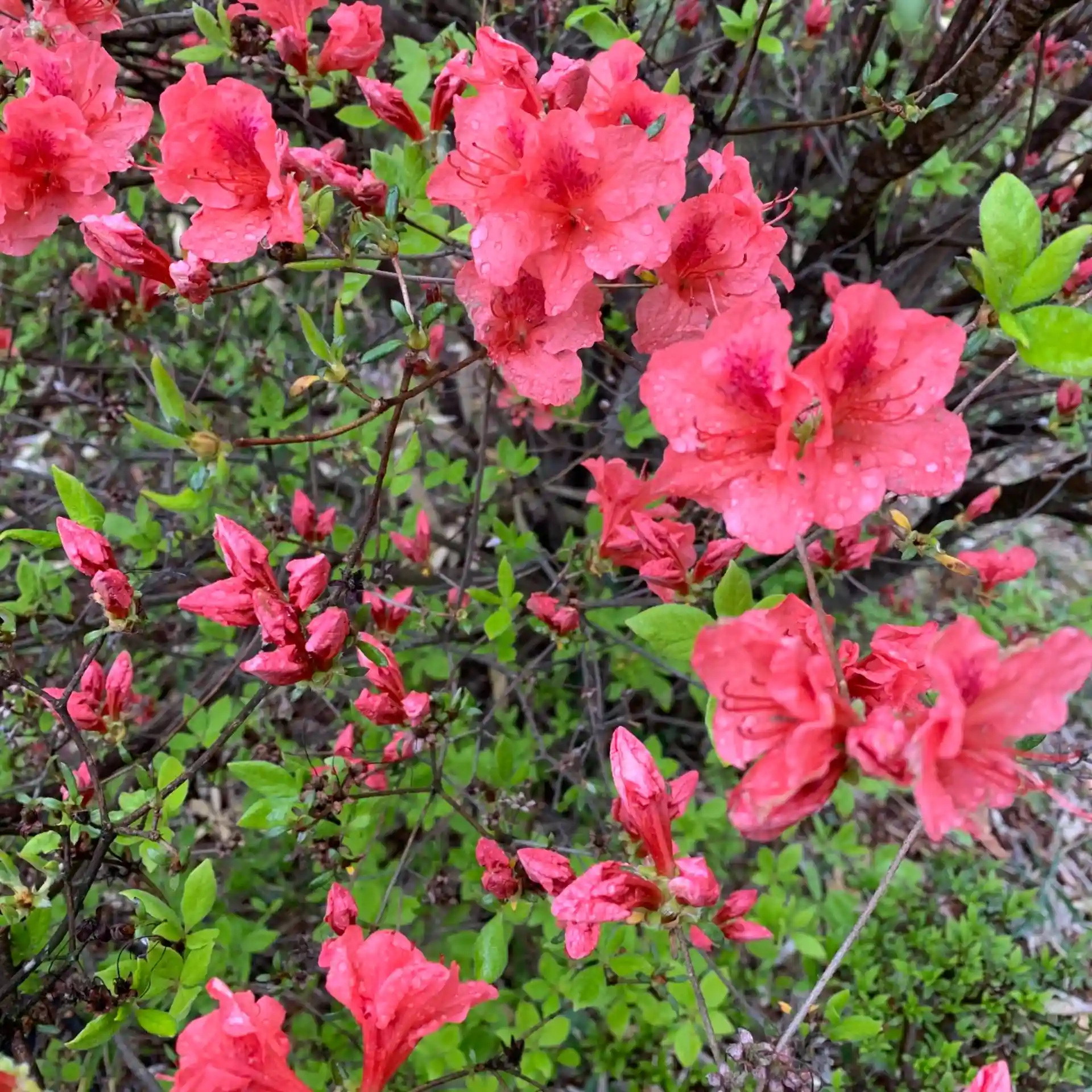 参道のツツジの鮮やかな花が咲き始めました。
