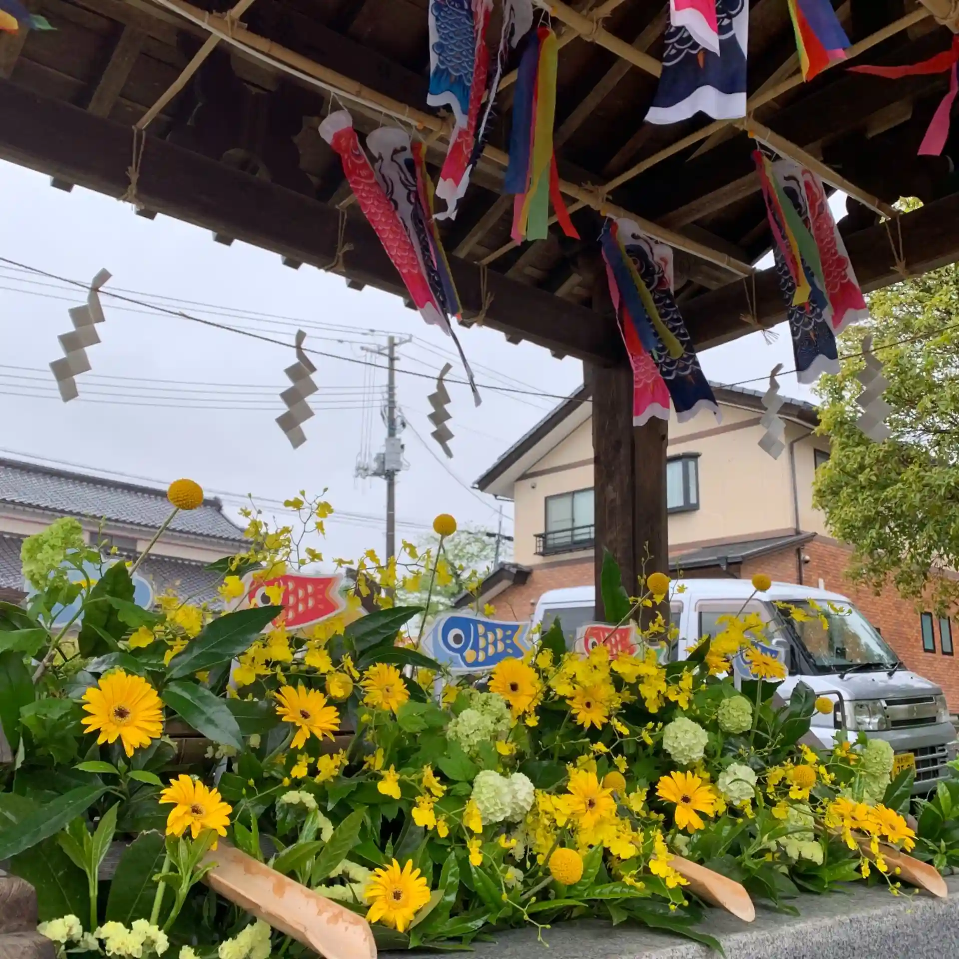 お花が痛んできたので、こどもの日をイメージして花手水を整えました。