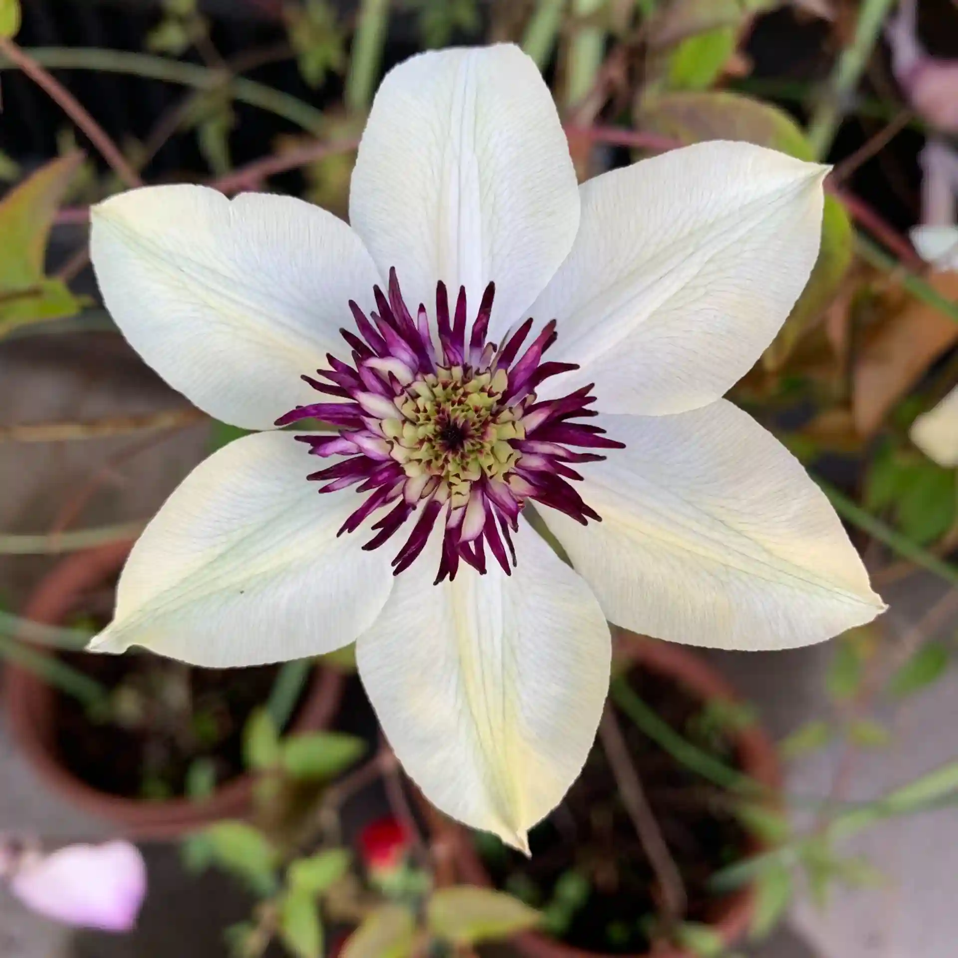 クレマチスが大きな花を咲かせています。