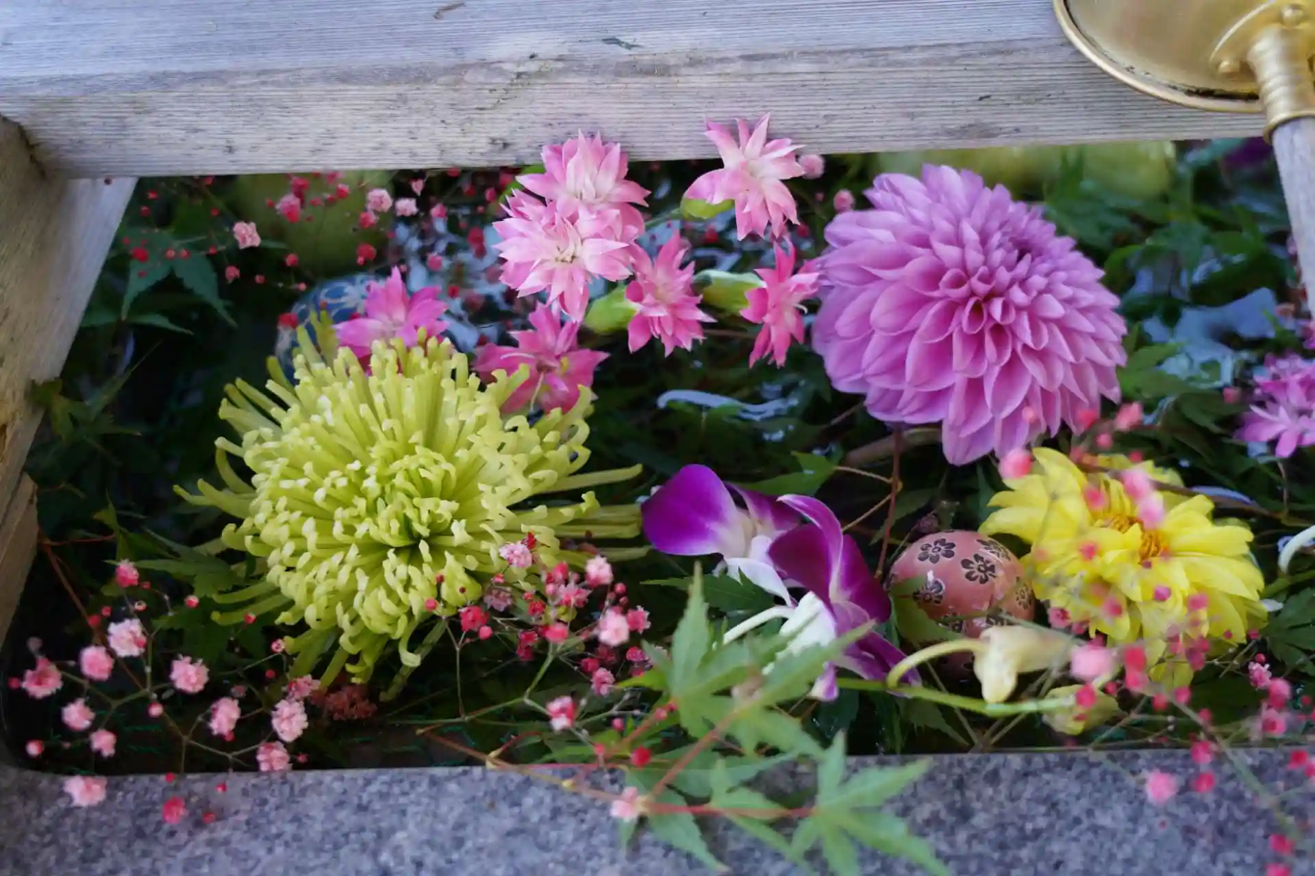 秋彼岸の花手水になっていました。