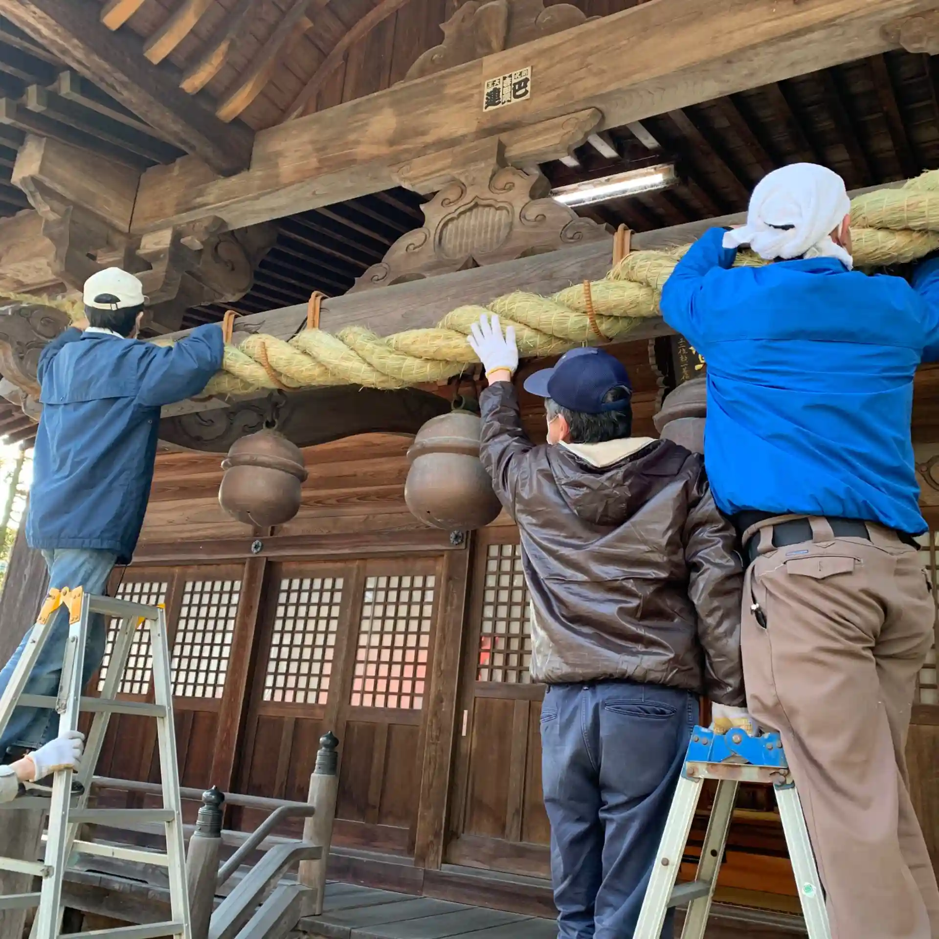 本年も当社楽人会の皆さんにしめ縄作製のご奉仕をいただい立派なものを奉納いただきました。