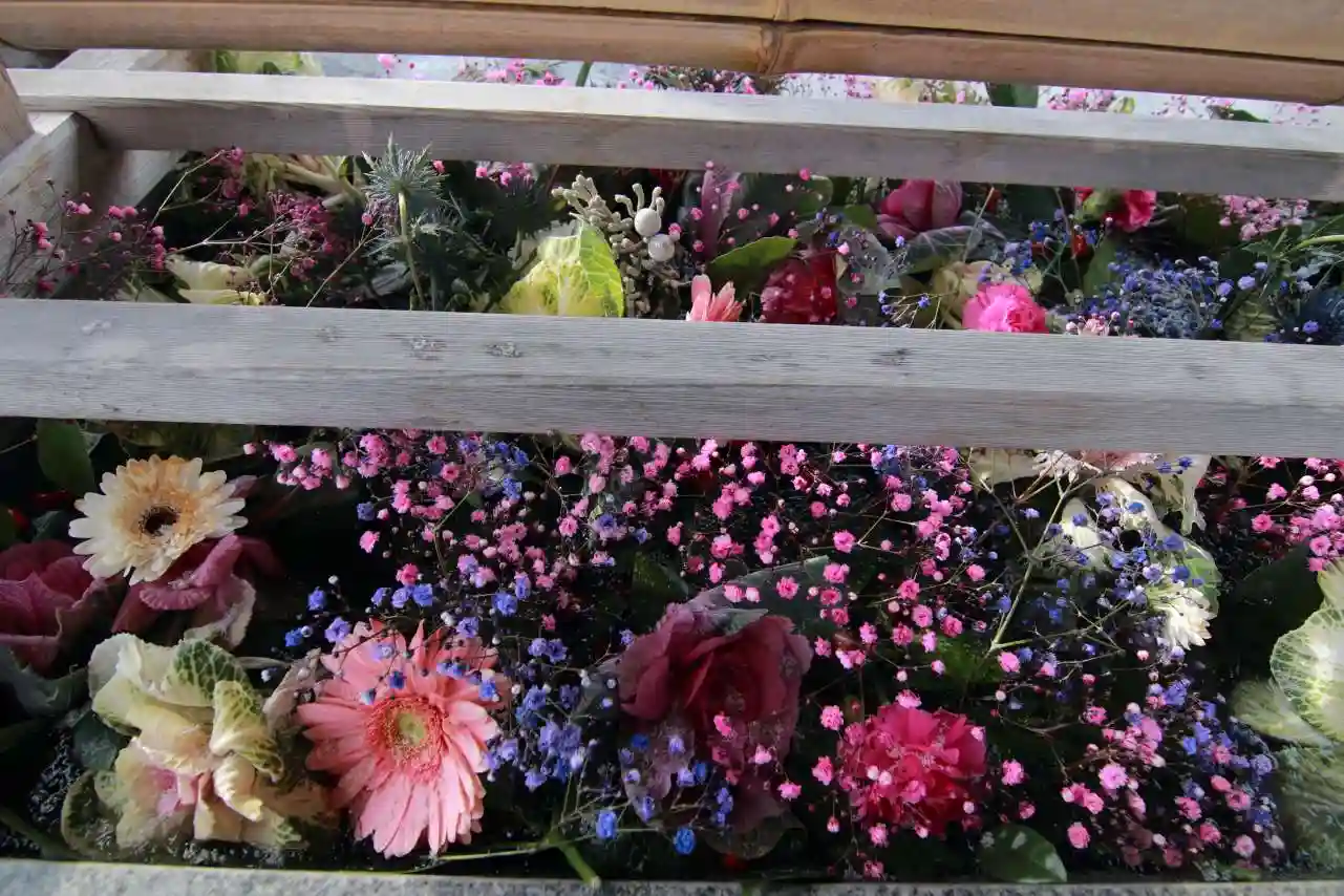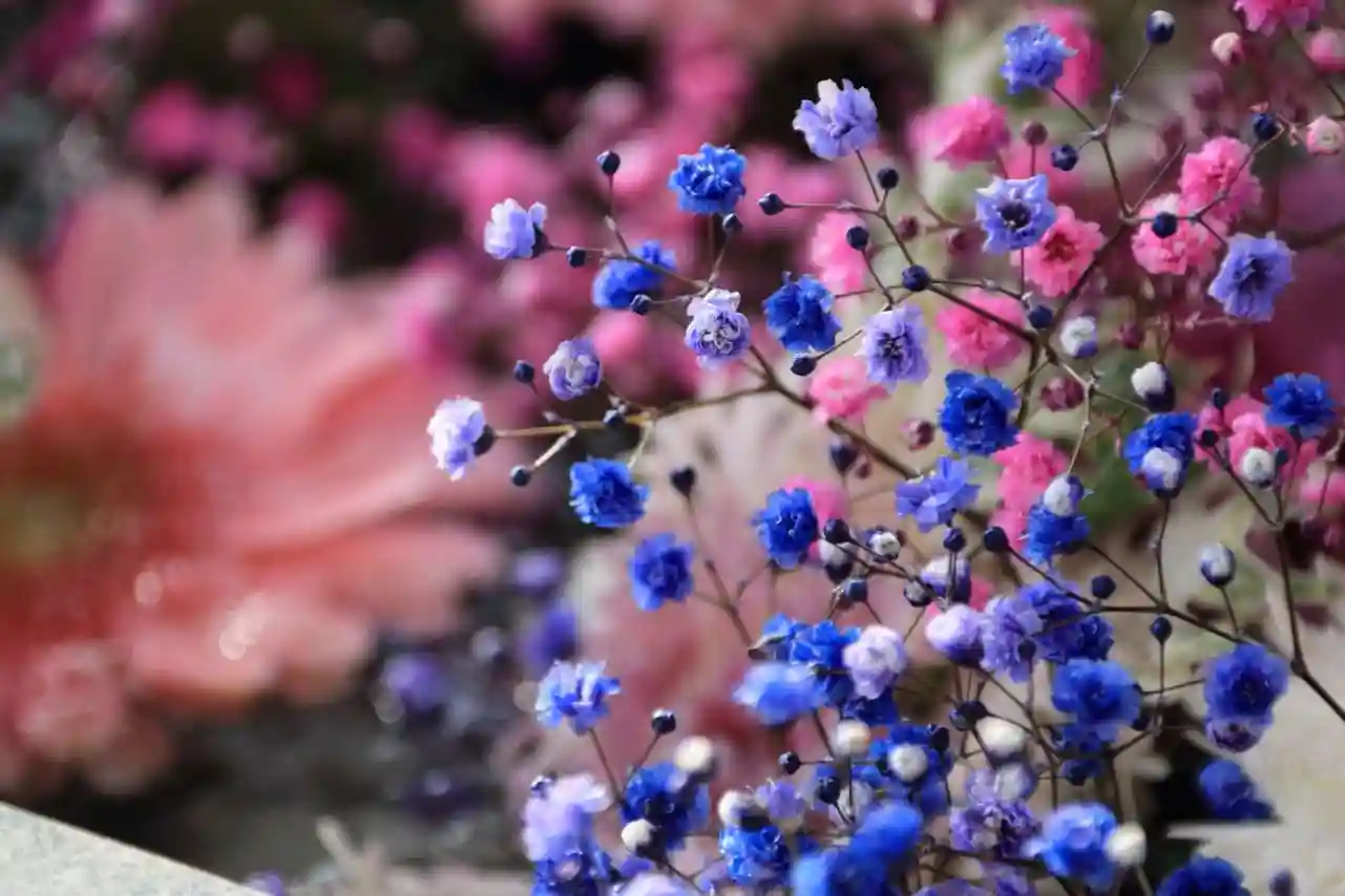 手水舎のカスミソウが華やかさを