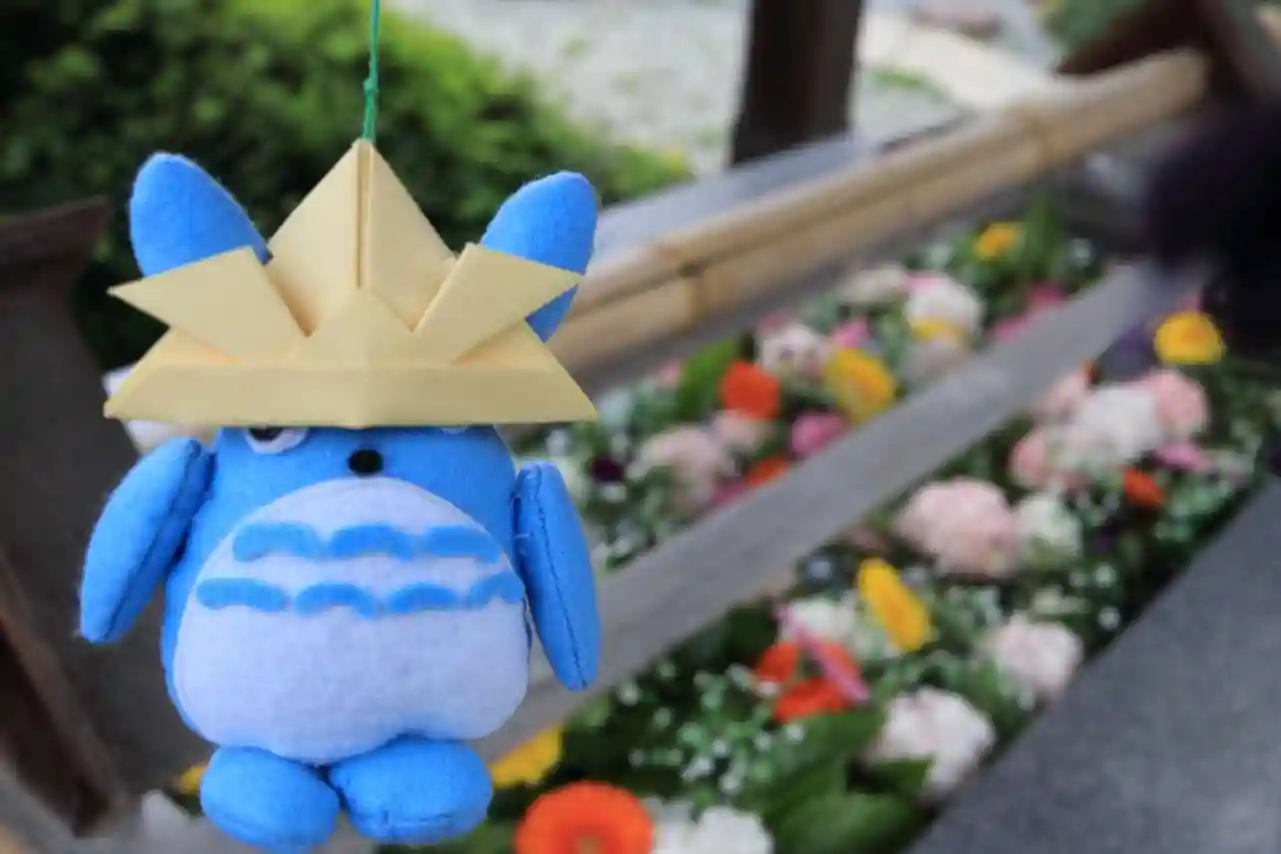 トトロが花手水をご案内