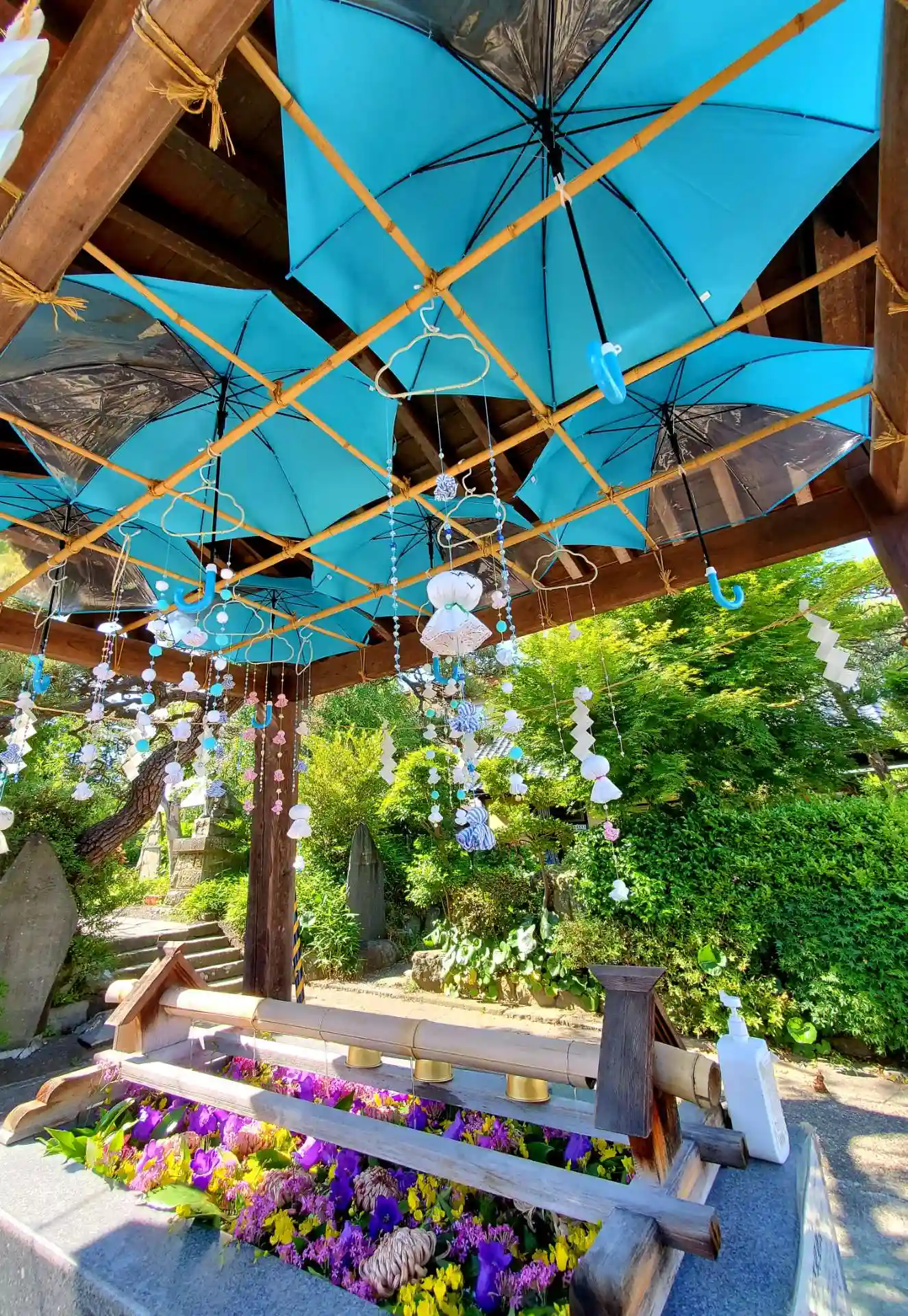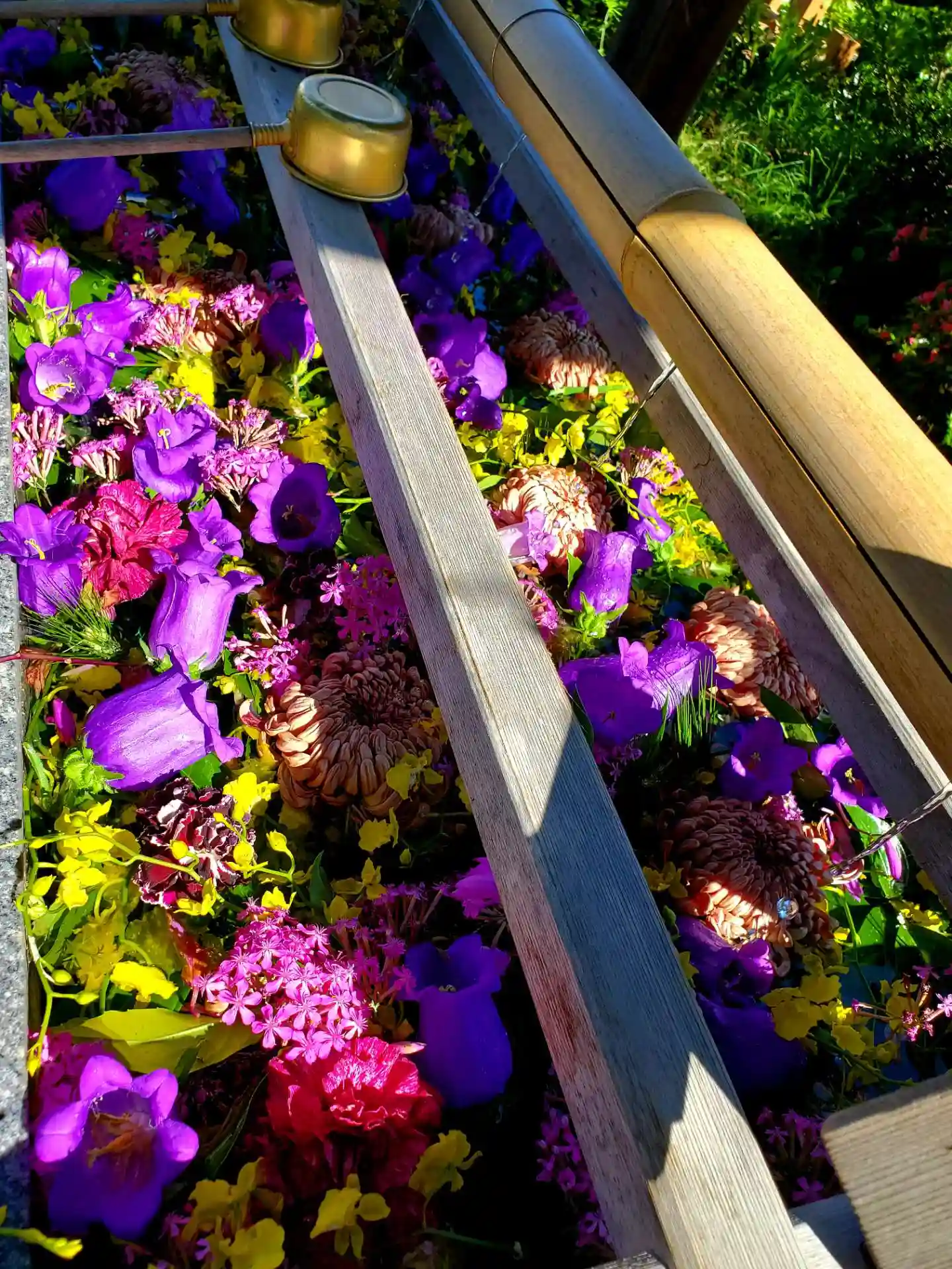 花手水舎には、鮮やかな生花😊🍀🌷🌿🌸🌹🌼🌺🌻