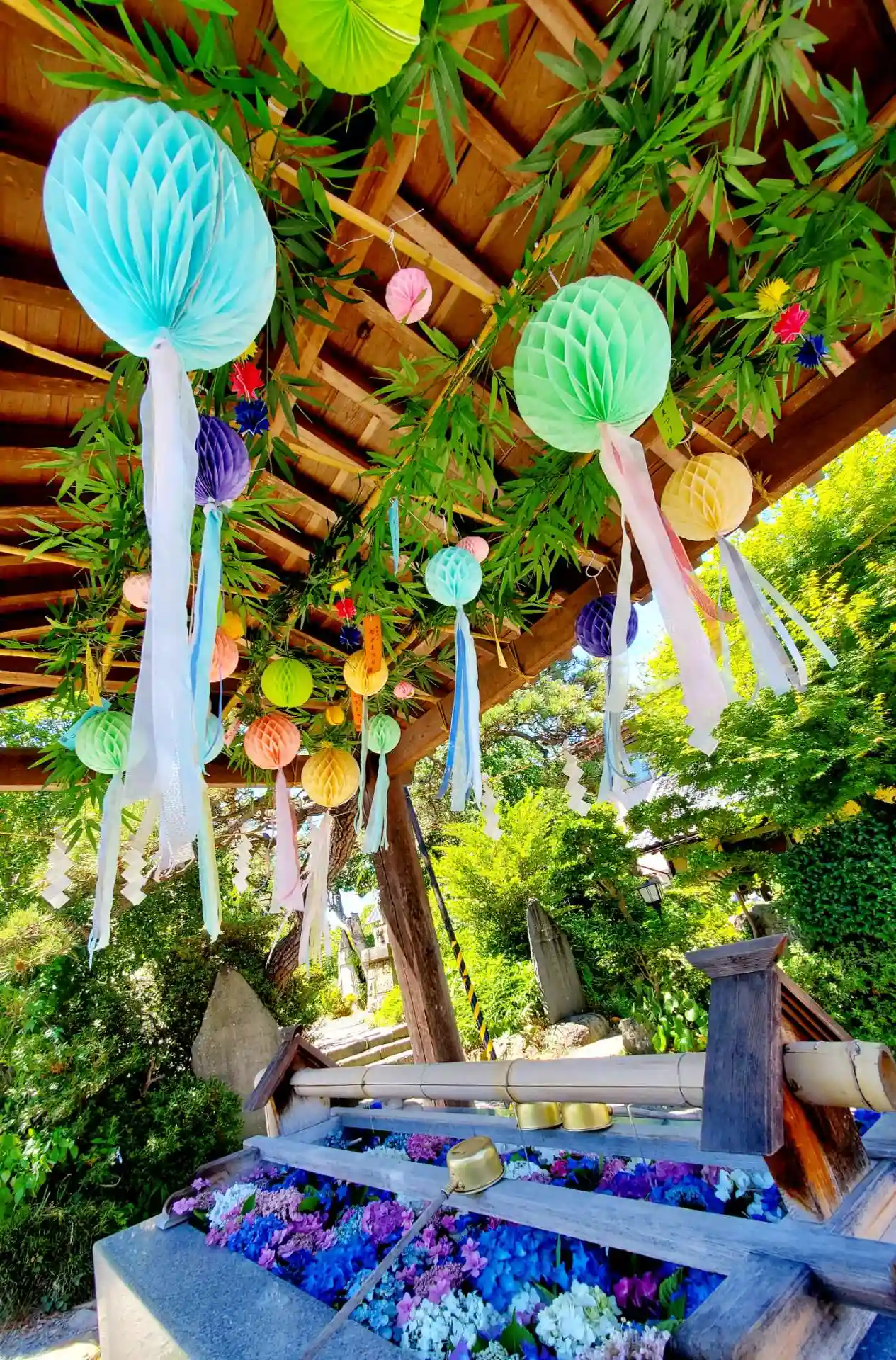 いつも素敵な花手水舎に癒されます🎵