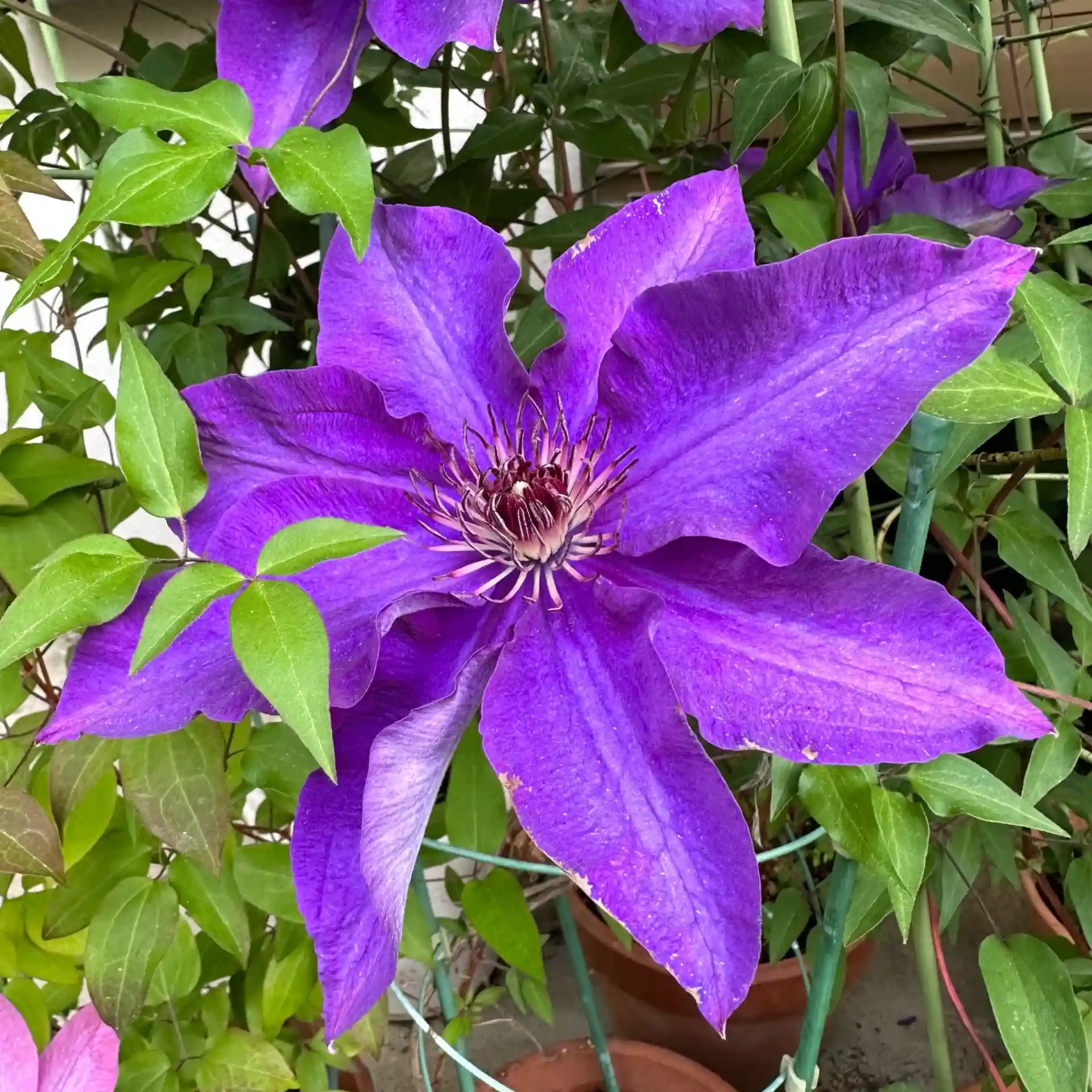 クレマチスが鮮やかな色の花を咲かせています。
