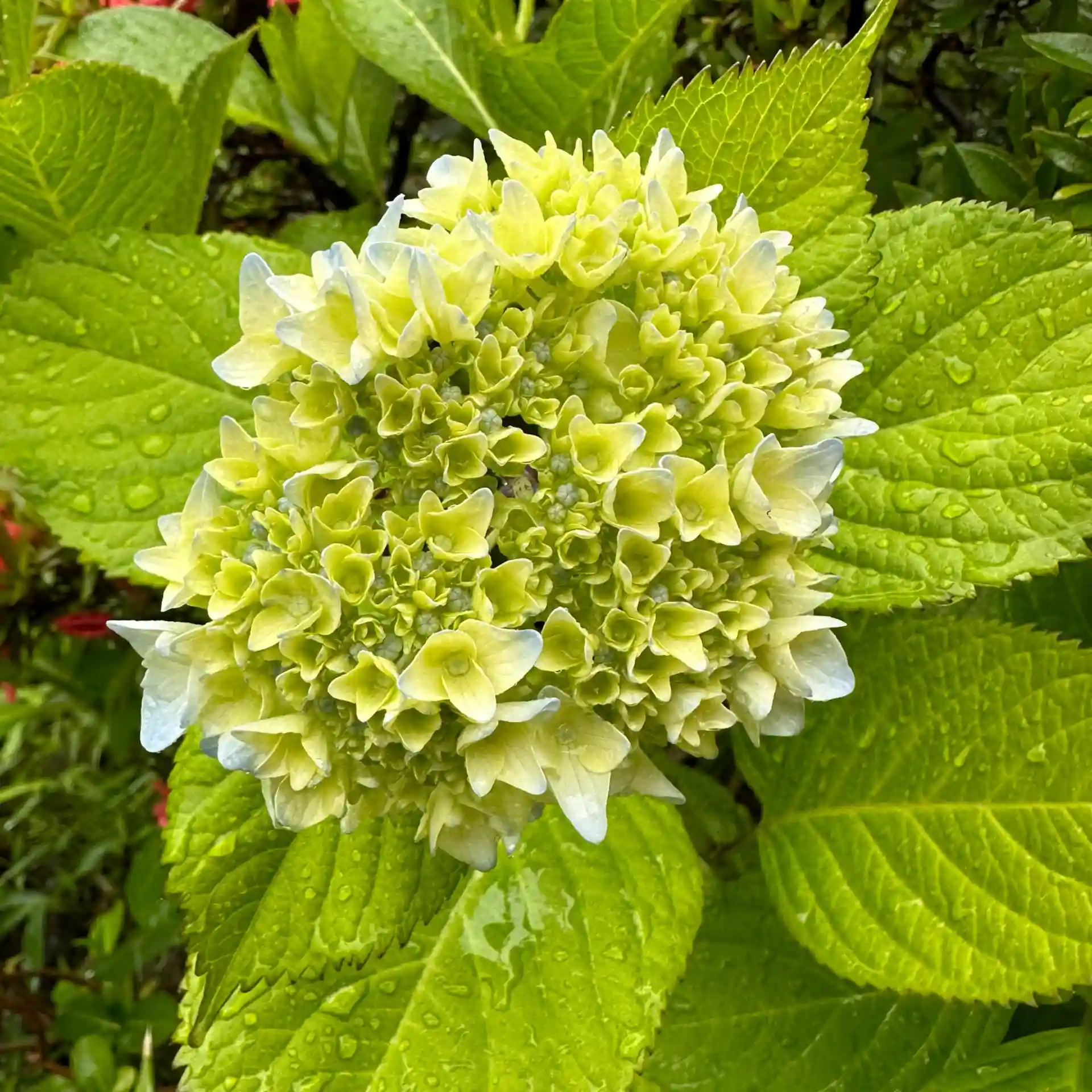 アジサイが徐々に色づいはじめました。