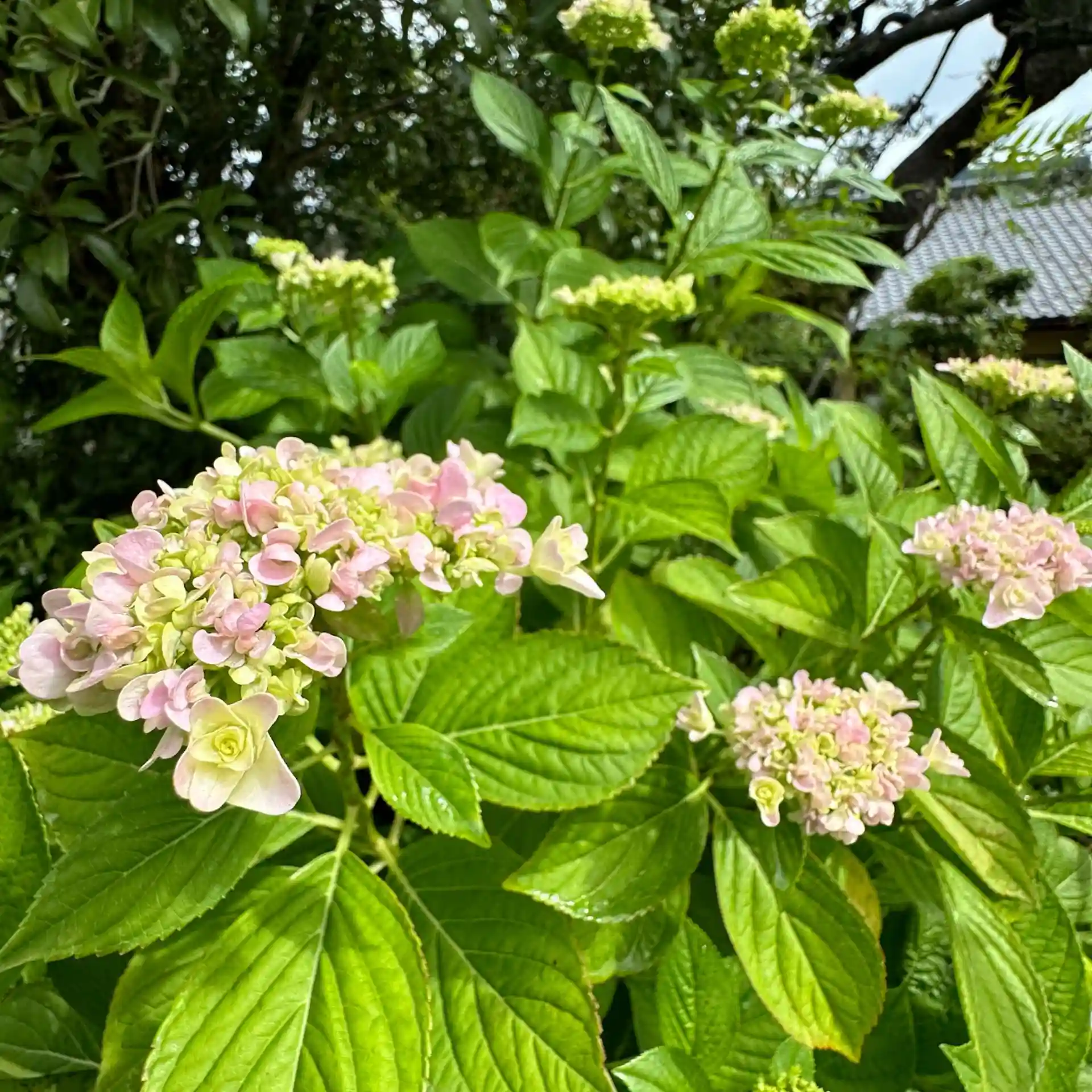 アジサイが徐々に色づきはじめました。