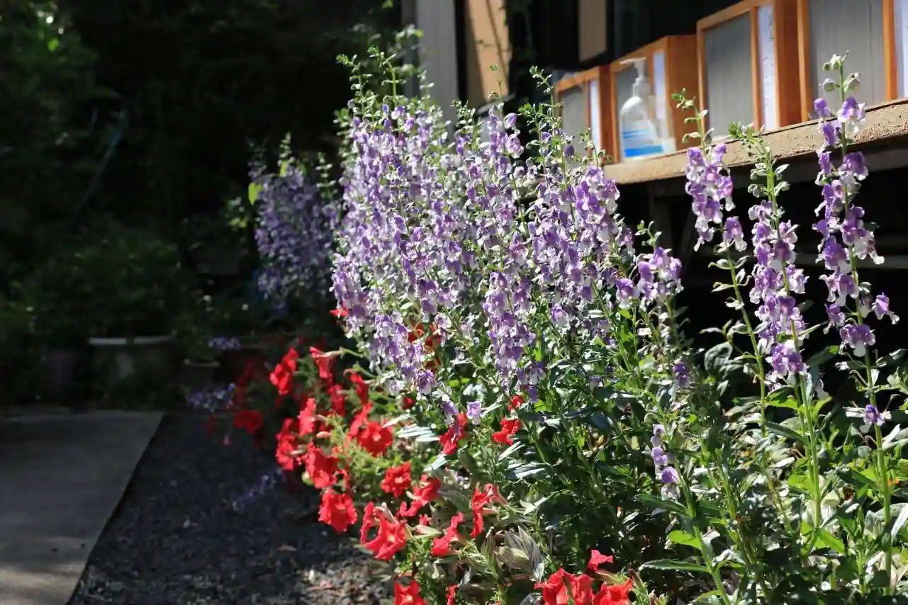 社務所前、いつもお花が綺麗ですね