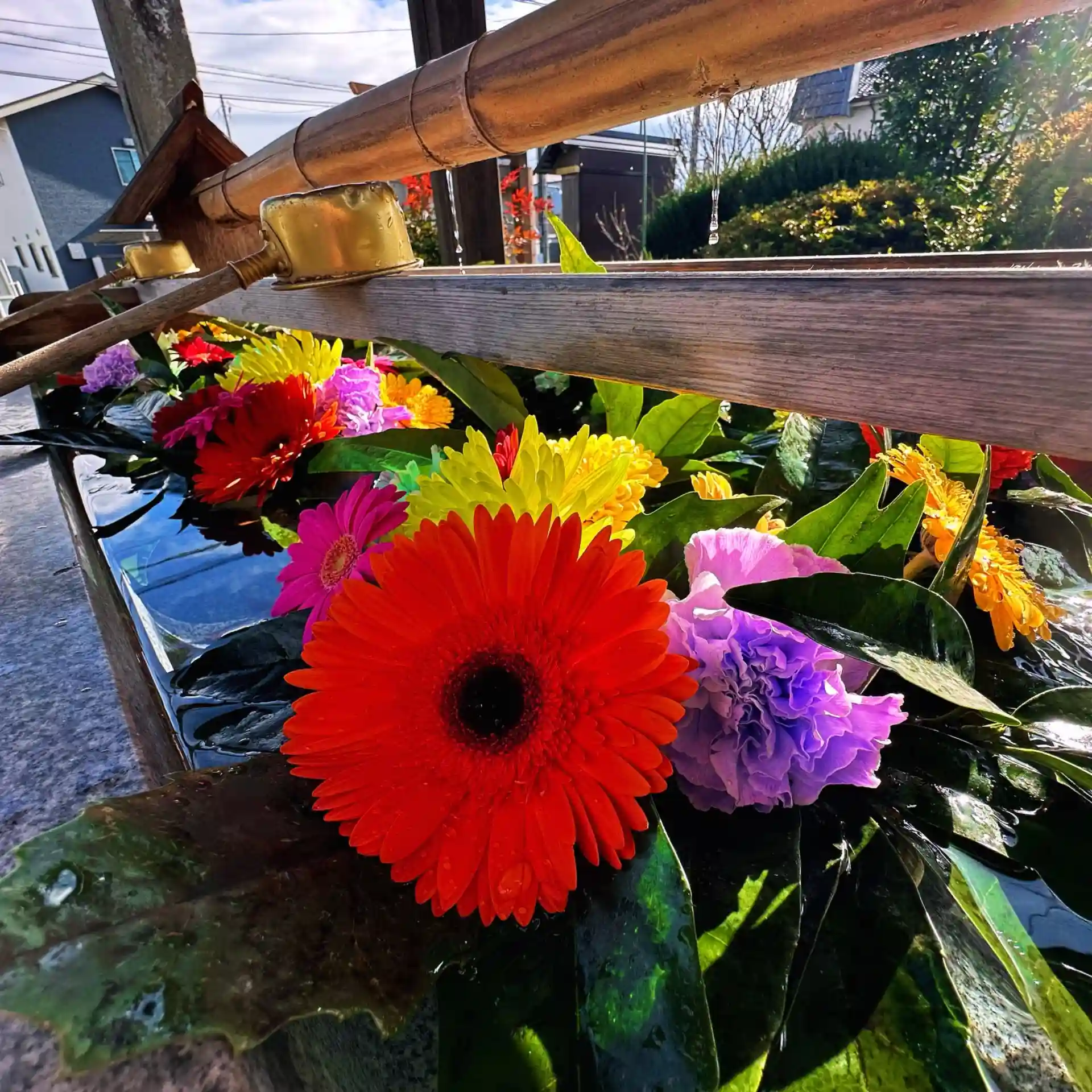 12月に入り手水舎の花をすべて入れ替えました。
