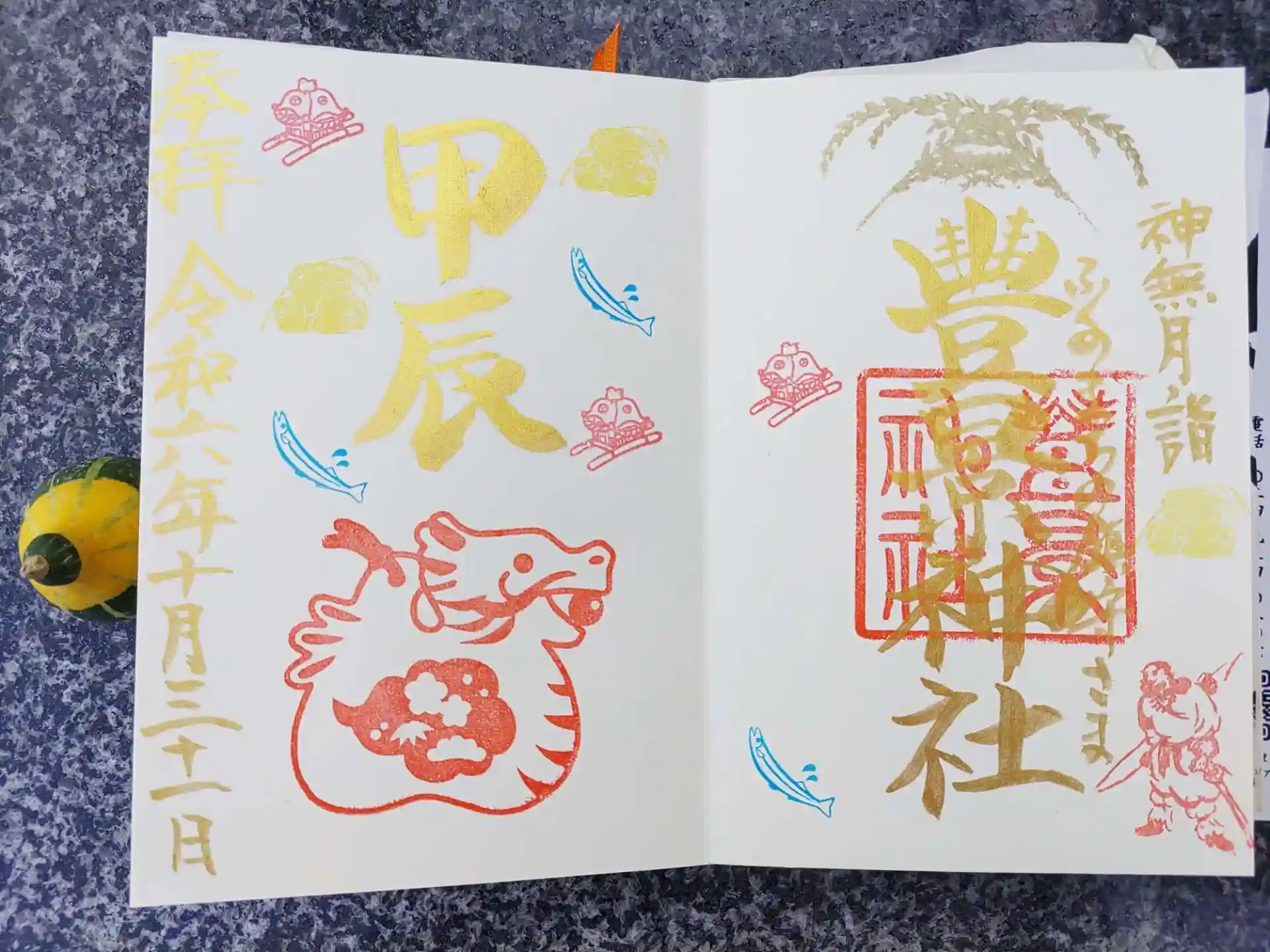 御朱印帳を受け取り、小さなかぼちゃをプレゼントして頂きましたよ。