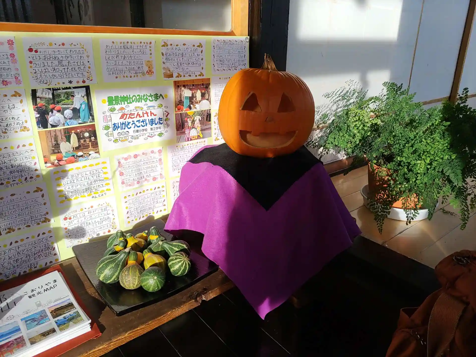 豊景神社さんの授与所で、職員さんがくりぬいたという、見事なカボチャ(の妖精⁉)にお会いしました。
