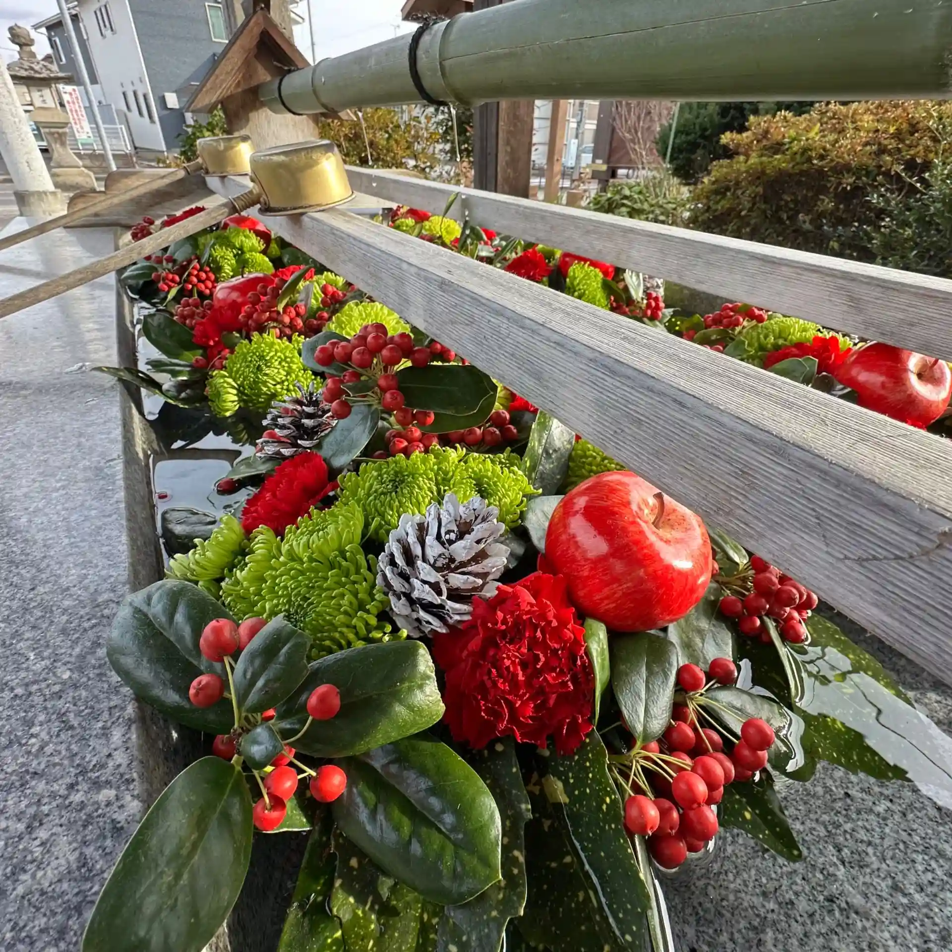 年内最後の花手水の入れ替えを行いました