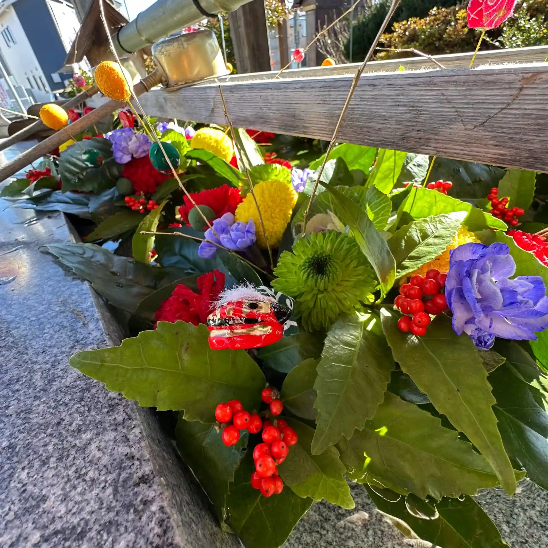 花手水も新年を迎えるにあたり新たに整えました