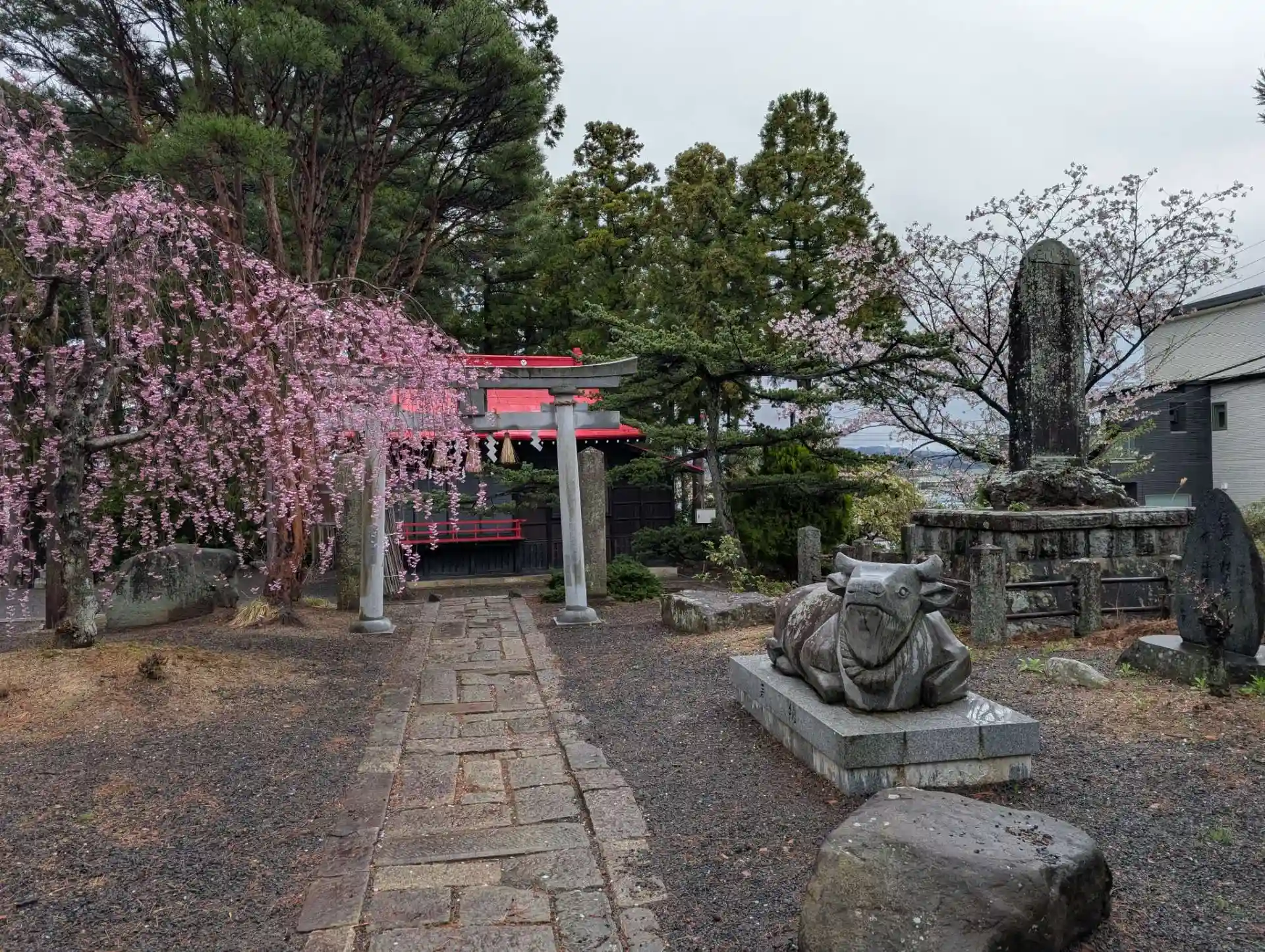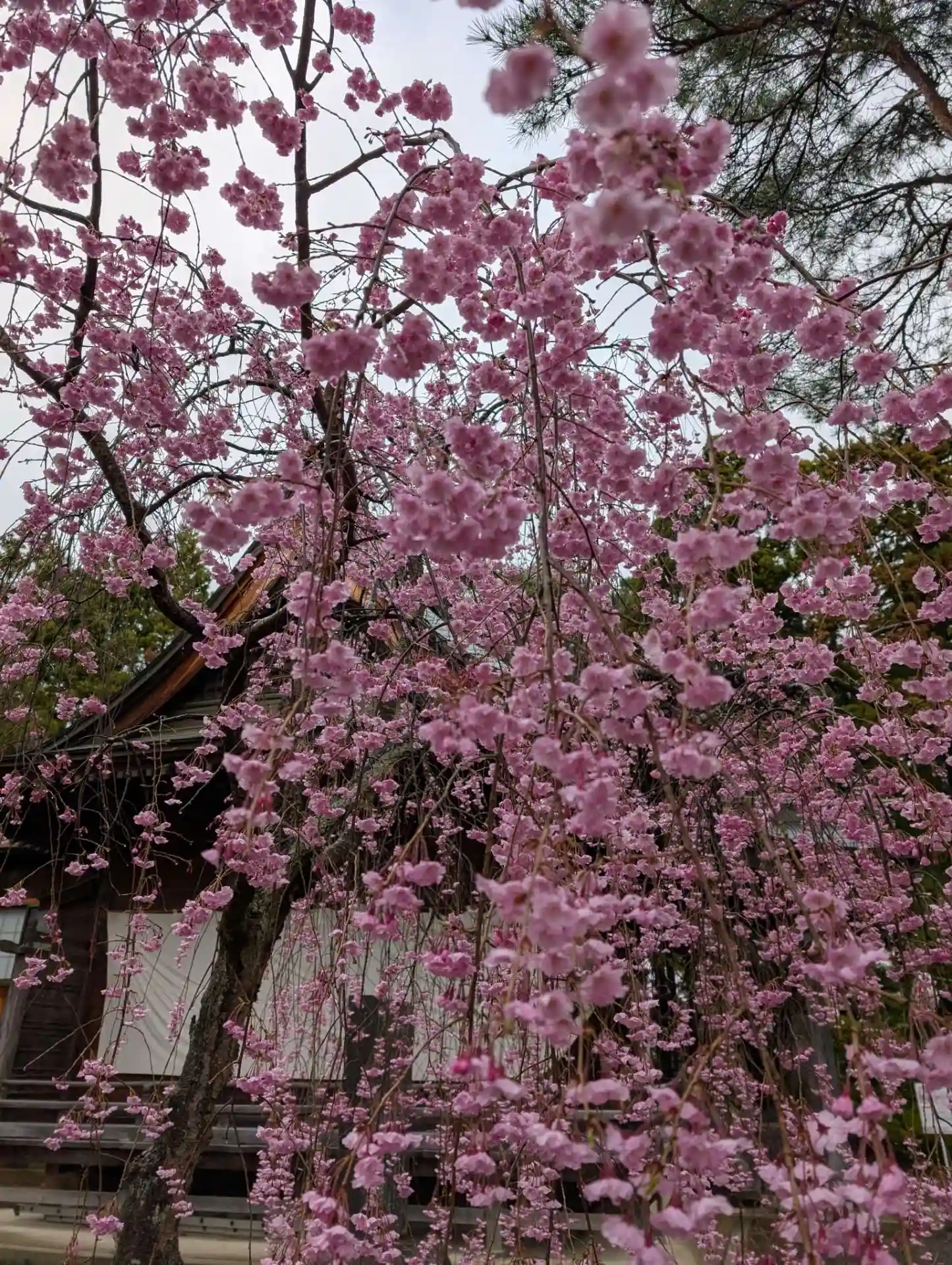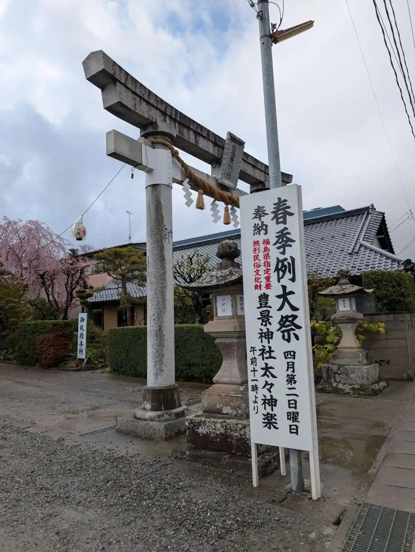 雨が止んでお参りがしやすくなりました。豊景神社さんより、東日本大震災の翌年に復興を願い、「三春の滝桜」の分け木を植樹したそうですが、綺麗なピンク色で自然にスマホのシャッターを押しました。